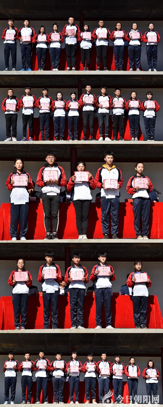 校領(lǐng)導(dǎo)為受到表彰的個人頒獎。三好學(xué)生代表、優(yōu)秀學(xué)生干部代表、優(yōu)秀團干部代表、優(yōu)秀團員代表、優(yōu)秀學(xué)生會干部代表、最佳導(dǎo)演獎代表、優(yōu)秀導(dǎo)演獎代表、最佳組織獎代表、優(yōu)秀組織獎代表、團體操優(yōu)秀工作者代表依次上臺領(lǐng)獎。