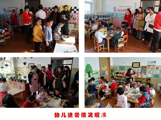 在現(xiàn)場觀摩幼兒的進餐環(huán)節(jié)時,孩子們進餐情況良好,每個班級都為幼兒營造了溫馨整潔的進餐環(huán)境。孩子們伴著舒緩的音樂,教師不催促、不訓斥,輕聲提醒幼兒細嚼慢咽,鼓勵和鍛煉幼兒自己進餐。小班幼兒都能夠安靜就餐,中、大班幼兒已經(jīng)實現(xiàn)了自我服務與管理,小小值日生的作用發(fā)揮得淋漓盡致,幼兒良好的進餐習慣已經(jīng)形成。