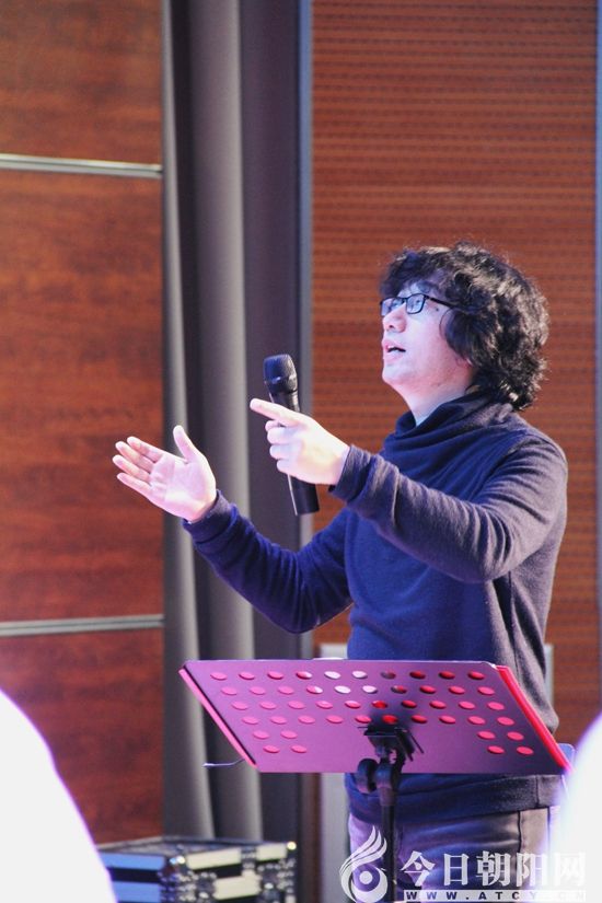 下午,孫雷與示范團(tuán)隊(duì)——朝陽(yáng)市城區(qū)中小學(xué)合唱指揮研訓(xùn)班的教師們合作,進(jìn)行現(xiàn)場(chǎng)排練,從發(fā)聲練習(xí)、呼吸訓(xùn)練、合唱曲目《飛來(lái)的花瓣》幾方面的排練,提高了教師們的實(shí)際排練能力。