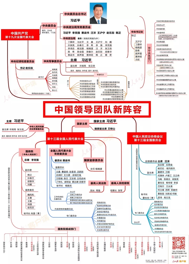 摘要:今年全國兩會(huì)適逢換屆,至3月19日,國家機(jī)構(gòu)和全國政協(xié)新領(lǐng)導(dǎo)層均已產(chǎn)生,中國領(lǐng)導(dǎo)團(tuán)隊(duì)的新陣容已組建完畢。