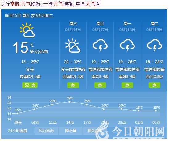 下面來看一下未來幾天朝陽的天氣預(yù)報吧!