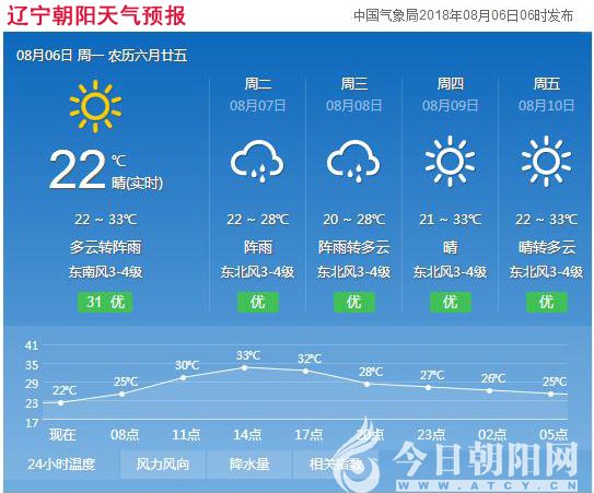 摘要:過去的兩天,遼寧朝陽的氣溫如同坐過山車,最高氣溫從38℃急降至30℃。經(jīng)歷了高溫的炙烤,重新呼吸到帶有雨水氣息的空氣是不是很爽呢?關(guān)注一下今天的天氣預(yù)報吧!8月6日,多云轉(zhuǎn)陣雨,氣溫22~33℃,東南風(fēng)3~4級。