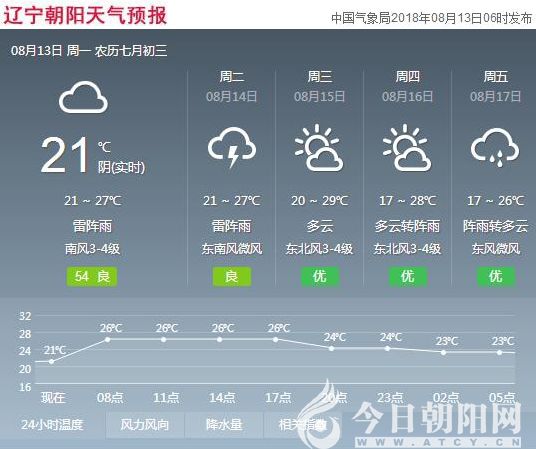今天是星期一,新的一周又開(kāi)始了,先來(lái)看一下天氣預(yù)報(bào)吧。8月13日,遼寧朝陽(yáng)雷陣雨,氣溫21~27℃,南風(fēng)3~4級(jí)。