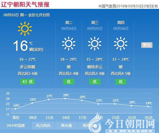 摘要:進(jìn)入九月,迎來新一輪降雨,遼寧大部分地區(qū)都被雨水覆蓋。雨過天晴后,天氣會有什么變化呢?來看一下今天的天氣預(yù)報(bào)吧。今天(9月3日),遼寧朝陽多云轉(zhuǎn)晴,16~27℃,西北風(fēng)5~6級。