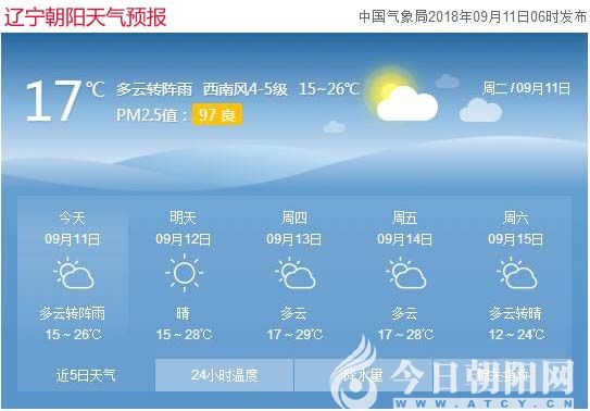 摘要:仲秋時(shí)節(jié),天氣漸涼,嘶鳴的蟬聲已不多見,想必南飛的雁群又該略過北方的天空,向南遷徙了。今天(9月11日),遼寧朝陽多云轉(zhuǎn)陣雨,氣溫15~26℃,西南風(fēng)4~5級(jí)。