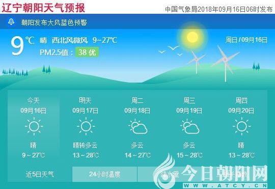 摘要:經(jīng)過大風和低溫的考驗,網(wǎng)友們是不是都長了心眼決定穿上秋褲了?今天(9月16日),遼寧朝陽比照昨天暖和了很多,天氣晴,最低溫度9℃,最高溫度為27℃,西北風微風。接下來的幾天,氣溫繼續(xù)回升,風向也會有所變化。