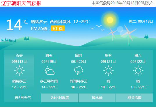 親愛(ài)的小伙伴們,你們起床了嗎?小編每天早上雷打不動(dòng)地為大家推送天氣預(yù)報(bào),是不是要給本小編比顆小心心呢?謝謝大家~今天(9月18日),遼寧朝陽(yáng)晴轉(zhuǎn)多云,12~29℃,西南風(fēng)微風(fēng),空氣質(zhì)量?jī)?yōu)。經(jīng)過(guò)一夜的休息,大清早鍛煉一下身體,開(kāi)始活力滿滿的一天吧。