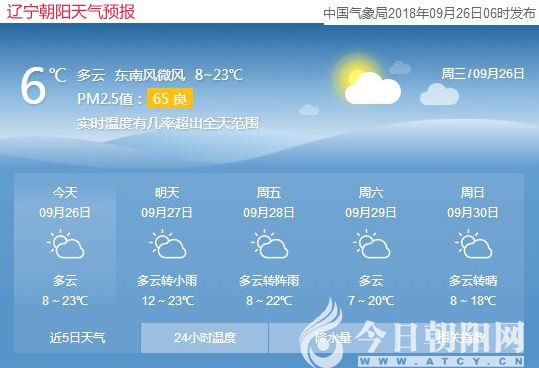 親愛的網(wǎng)友早上好!與家人歡度佳節(jié),欣賞到十五的月亮十六圓的中秋美景,心情是不是像這兩日的天氣一樣超級好呢?今天(9月26日),遼寧朝陽多云,氣溫在8~23℃之間,東南風(fēng)微風(fēng)。