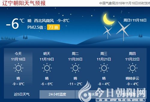 親愛的網(wǎng)友,早上好!天氣是越來越冷了,今天是遼寧朝陽入冬以來最冷的一個(gè)早晨。11月18日,天氣晴,最低氣溫-9℃,最高氣溫8℃,西北風(fēng)3~5級(jí)??諝赓|(zhì)量良好,而且這樣的天氣條件極不易誘發(fā)過敏,可放心外出,享受生活。早上出門的話,提醒大家一定要多穿!多穿!多穿!重要的事情說三遍。
