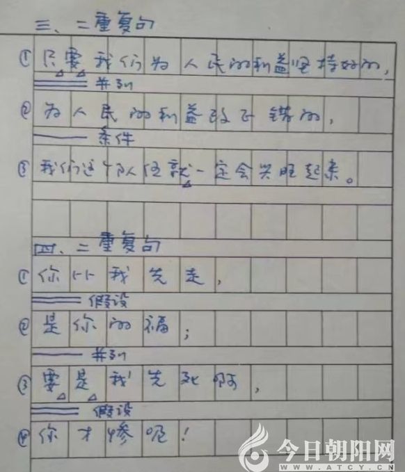 若干年前,我曾畫了數(shù)百棵復句樹寄北大中文系,數(shù)月無音信,后致函索回,今已不知所終。畫復句樹,對理解復句還是很有幫助的。