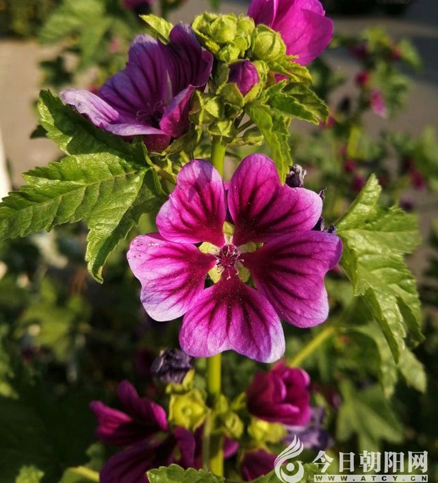 我查閱《辭?!?,這花叫錦葵,和蜀葵同屬于錦葵科。記得小時(shí)候人們叫它“小秫秸花”。民間稱蜀葵為“秫秸花”,錦葵沒有蜀葵高大,就叫“小秫秸花”,也是有道理的。