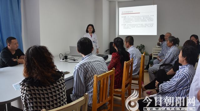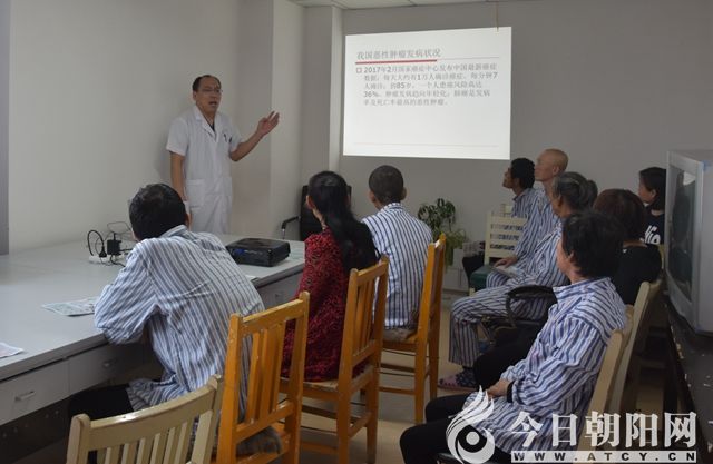 上午10時,腫瘤內(nèi)科會議室內(nèi),鄭德文、趙敏兩位副主任醫(yī)師以《惡性腫瘤的預(yù)防》和《乳腺癌的健康管理》為題,向部分住院患者和家屬進(jìn)行了健康宣教講座。