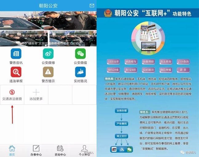 申請綁定業(yè)務(wù)的駕駛?cè)诵柘韧ㄟ^“朝陽公安”手機APP、交通違法繳費窗口進行實名注冊。