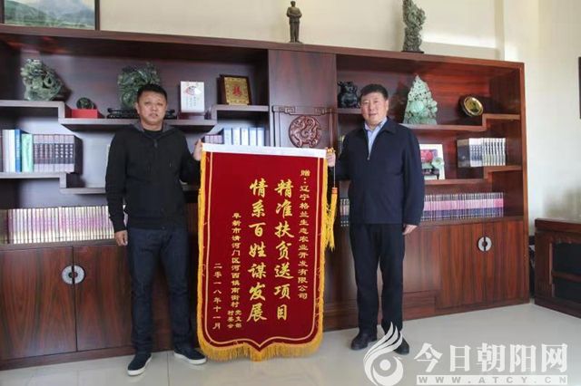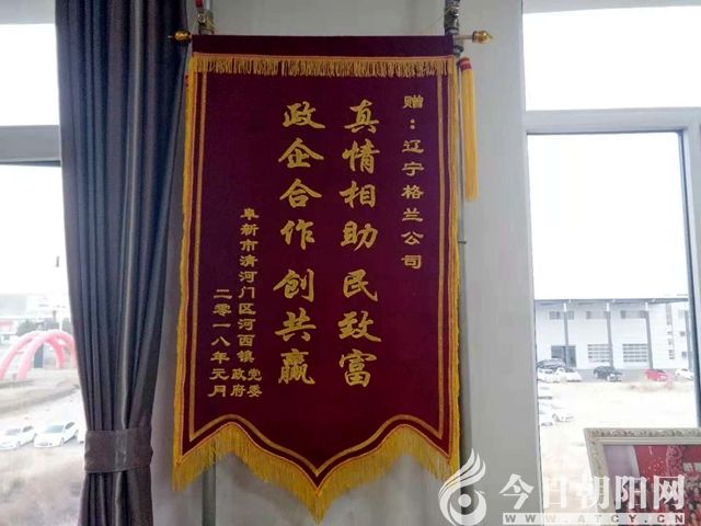 這里所說(shuō)的“鄰居”,是指遼寧省阜新市清河門區(qū)河西鎮(zhèn)南街村。第一面錦旗贈(zèng)送的時(shí)間是2018年1月,上寫“真情相助民致富,政企合作創(chuàng)共贏”,落款是清河門區(qū)河西鎮(zhèn)黨委、政府;第二面錦旗制作于今年11月,上寫“精準(zhǔn)扶貧送項(xiàng)目,情系百姓謀發(fā)展”,由河西鎮(zhèn)南街村黨支部、村委會(huì)于11月7日贈(zèng)送。