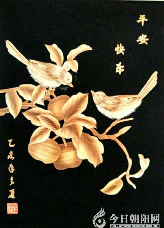 一次,處于苦悶之中的他去大凌河邊散心,看見有人在踢毽子,毽子上的羽毛五顏六色,他想羽毛和麥秸應(yīng)該有相似之處,既然羽毛可以染色均勻,麥秸應(yīng)該也可以啊。就趕緊去找一個(gè)學(xué)化工的同學(xué)請(qǐng)教,同學(xué)專門為他配制了化學(xué)制劑,讓他摻入顏料里試試,一試效果真的不錯(cuò)。但是,這種化學(xué)制劑有一種很難聞的刺鼻氣味,張全宏頂著刺鼻的藥水味開始給麥秸片染色、剪裁、作畫,但效果還是不理想。
