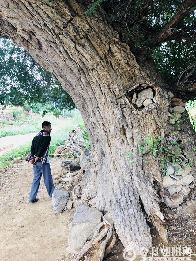 采訪中,一棵有著百年樹(shù)齡的老榆樹(shù)屹立在村子的地頭邊,樹(shù)的根深深地扎在了這片讓它賴以生存的泥土中,樹(shù)干在一個(gè)世紀(jì)的生長(zhǎng)中歷經(jīng)滄桑,但依然枝頭茂盛,當(dāng)?shù)氐睦习傩照f(shuō),它有靈性。因?yàn)楦珊担苓厧缀鯖](méi)有更多的樹(shù)木存活,唯有這棵老榆樹(shù)遒勁挺拔,它見(jiàn)證了豐山村一代又一代人抗?fàn)幹@里的貧瘠,它的蒼勁和靈性似乎告訴這里的人們,總有一天這里的山一定會(huì)豐、樹(shù)一定會(huì)綠、路一定會(huì)有、日子一定會(huì)越來(lái)越好。