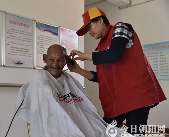 服務(wù)隊還特別請來了一位理發(fā)師,幫助老人們理發(fā),一位老人臉上笑開了花。