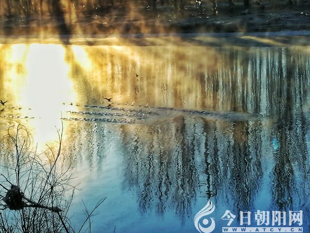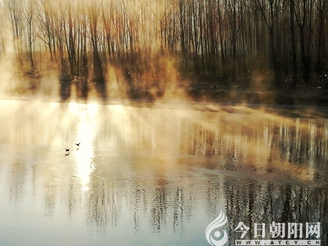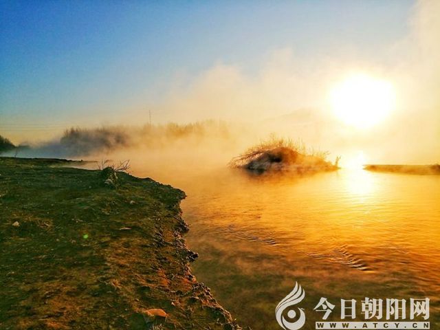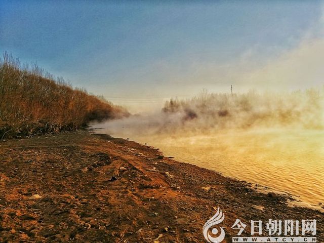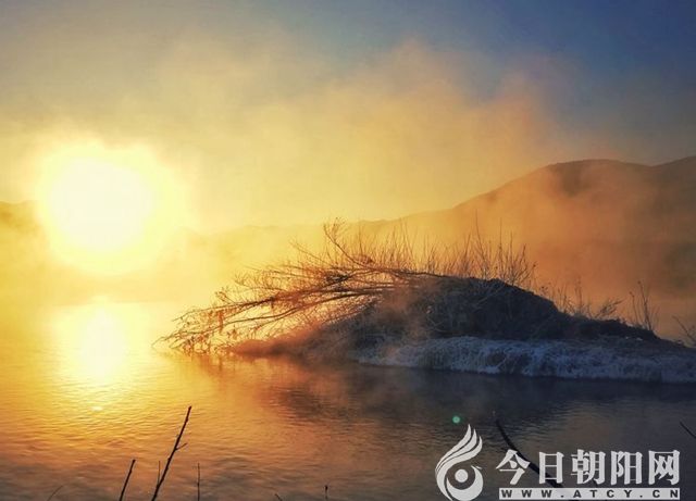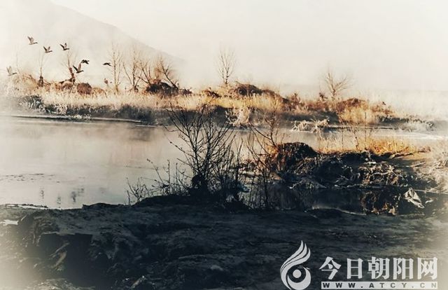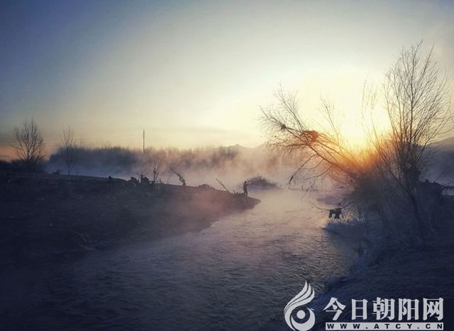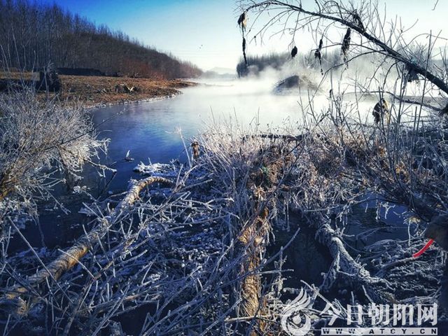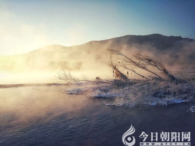 薄霧,從冰河的帷幔中醒來,輕吻著河床,拂著岸柳的發(fā)絲。大山,在不遠處展著胸懷,擁抱著童話世界。