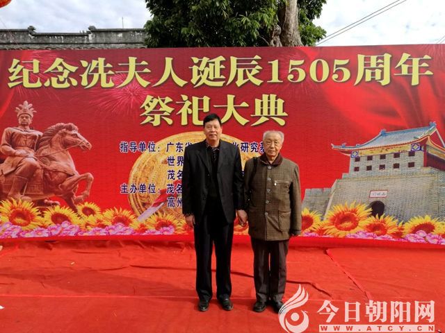 2018年1月初,在高州冼夫人千年誕辰祭祀大典上,馮金卓(左)與應(yīng)邀來訪的馮永謙先生(右)合影留念