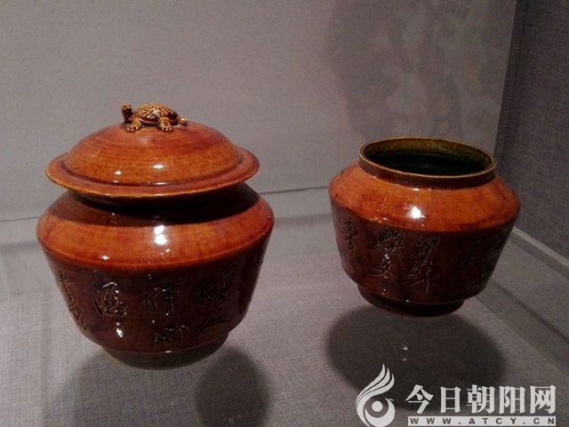 醬釉刀書《岳陽樓記》,“先天下之憂而憂,后天下之樂而樂”和“居廟堂之高則憂其民,處江湖之遠(yuǎn)則憂其君”的憂國憂民情懷,讓這件藝術(shù)作品更加熠熠生輝。也讓這千古名句在新遼三彩的映照下更加沁人心脾,欣賞之中使心靈再次得到凈化和提升。黃釉刀書《佛說八大人覺經(jīng)》塔罐與《心經(jīng)》塔罐是兩件珍品。用塔罐造型書寫經(jīng)文,內(nèi)容與形式相互感應(yīng),互為交融,達(dá)到了為新遼三彩增輝補美之效果?!恫杞?jīng)》蓋罐用綠色調(diào),與陸羽對茶葉的精彩描述相呼應(yīng)!陸羽《茶經(jīng)》中說:“為飲最宜精行簡徳之人。”引人清靜、儉樸、修身、養(yǎng)德。這是文學(xué)與藝術(shù)的完美結(jié)合,也是藝術(shù)品內(nèi)容與形式的完美呈現(xiàn)。這樣的作品其審美價值和教化意義,將會蘊含于久遠(yuǎn)的藝術(shù)魅力之中。