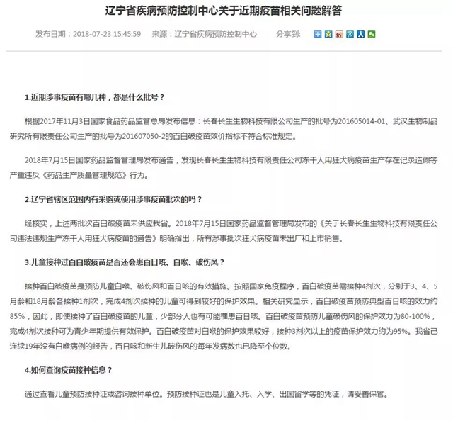 【轉(zhuǎn)發(fā)提醒】遼寧朝陽家長請(qǐng)放心:涉事批次疫苗未供應(yīng)遼寧省