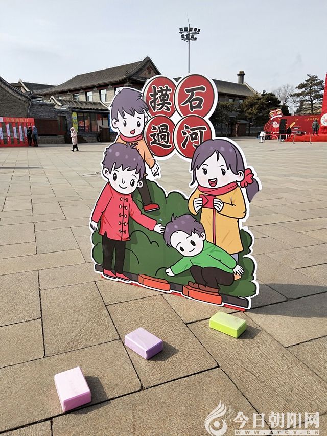 廣場上有各種游戲項目,丟沙包、滾鐵環(huán)、跳房子、跳繩、摸石頭過河等等。重玩兒時的游戲,感覺又回到了童年!