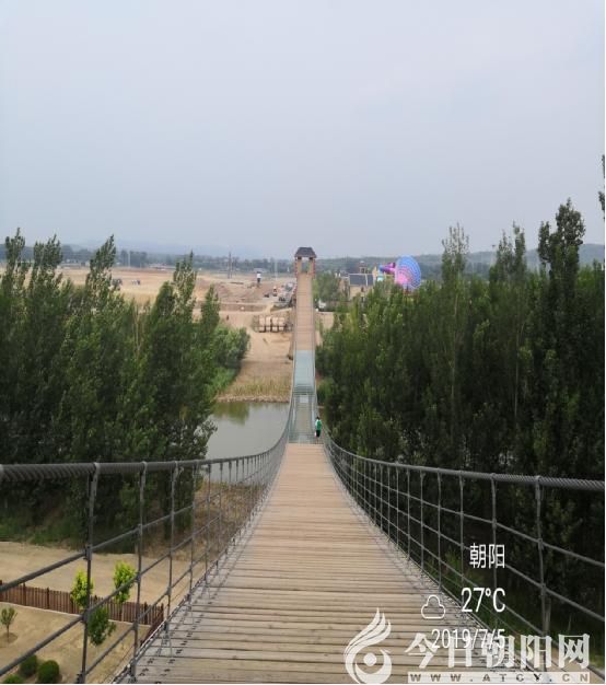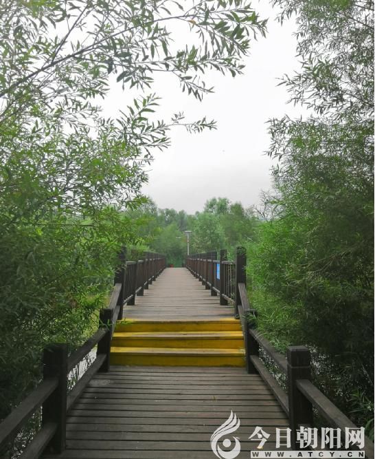 我調(diào)整手機(jī)拍照水印功能,顯示今天是2019年7月5日,朝陽(yáng),陰雨,27℃。步入水上木棧道,曲曲折折,三百多米,不長(zhǎng),卻移步有景,岸邊蘆葦輕搖,水柳葳蕤,蒲棒張揚(yáng),綠意婆娑,波瀾不驚的七八十米寬水面上,一群白鵝、麻鴨,分成幾路橫隊(duì),慢悠悠地在兩岸往返游動(dòng),撥開(kāi)水面,蕩出漣漪,一幅清新雅致涼爽的盛夏戲水圖于無(wú)聲中畫就。前行楊柳遮地,蒿草沒(méi)人,密不透風(fēng),樹稍篩下幾縷陽(yáng)光,風(fēng)兒走過(guò),灑下金黃的陽(yáng)光,暖人。