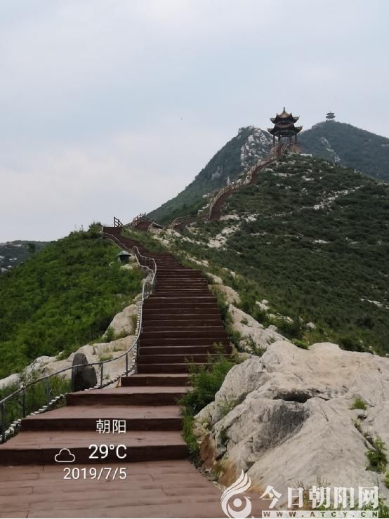我要攀登眼前這座二龍山。近年來(lái),每次回家行車走建三線,都被這山光水色所吸引,它翩若飛龍,盤旋于大凌河畔,與王子山相對(duì),蜿蜒曲折,山脊青石裸露,狀似龍脊,盤山水泥棧道沿分水嶺(脊骨)隨形依勢(shì),向前延伸,夜晚璀璨燈光鑲嵌輪廓,更有飛龍欲升,一覽眾山小的況味。