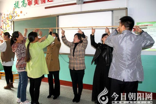 按著這種方法操作,終于成功了一次。每個人的臉上都露出了笑容,不自覺地發(fā)出“啊”的一聲。這個游戲要求每個人必須得有團隊合作意識,摒棄個人主義,心中有他人、有團隊、有任務,把自己充分融入到集體中,才能獲得游戲的成功,相互指責抱怨,只會面臨更多一次的失敗。