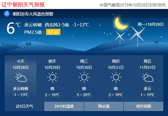 今天是2019年10月28日,星期一,農(nóng)歷十月初一。遼寧朝陽多云轉(zhuǎn)晴,氣溫