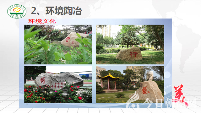 新時(shí)代,新作為,新發(fā)展。特色辦學(xué)目標(biāo)和價(jià)值定位,決定了學(xué)校的走特色發(fā)展之路,營(yíng)造了學(xué)校獨(dú)特的校園文化——“藝文并遒、身心競(jìng)美”。學(xué)校依托特色項(xiàng)目,進(jìn)一步內(nèi)化和升華了學(xué)校濃厚、獨(dú)特、優(yōu)質(zhì)的學(xué)校文化,并不斷創(chuàng)新,同時(shí)滲透到學(xué)校工作的各個(gè)方面,在學(xué)校的校園文化建設(shè)中充分凸顯。像環(huán)境文化、走廊文化、樓梯文化、行為文化、詩(shī)詞文化、儒家文化、道德經(jīng)文化,成為校內(nèi)一道風(fēng)景。
