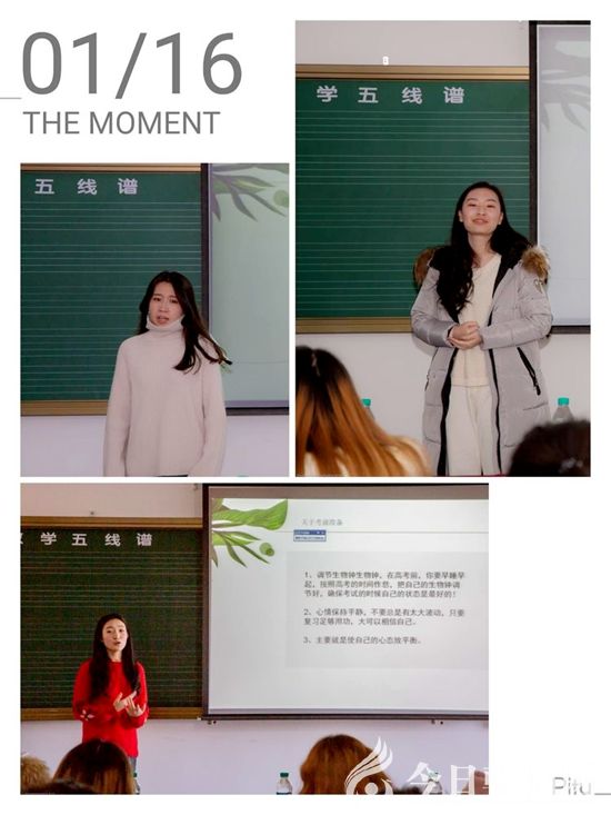 此次回到母校參加交流聯(lián)誼會的11名學(xué)生目前就讀于沈陽師范大學(xué)和沈陽大學(xué)。她們通過幻燈片的方式向?qū)W弟學(xué)妹展示了各自學(xué)校的校史、風(fēng)貌、優(yōu)美的校園環(huán)境以及學(xué)前教育專業(yè)的各種活動,用自身的經(jīng)驗告訴學(xué)弟學(xué)妹應(yīng)該如何復(fù)習(xí),怎樣調(diào)整高考期間焦慮的情緒。