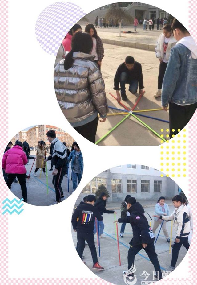 此外,學(xué)生科還組織了豐富多彩的拓展訓(xùn)練,來培養(yǎng)新生的合作意識和團(tuán)隊(duì)精神。例如挑戰(zhàn)150秒,學(xué)生們以小組為單位,在150秒內(nèi)要迅速完成動感顛球、能量傳輸、不到森林、分久必合、大河之舞、動感隊(duì)呼6個項(xiàng)目。在最后一天的內(nèi)務(wù)整理驗(yàn)收、隊(duì)列隊(duì)形驗(yàn)收、拓展訓(xùn)練比賽中,高鐵專業(yè)獲得了隊(duì)列隊(duì)形和拓展訓(xùn)練一等獎,學(xué)前教育、高鐵、計(jì)算機(jī)應(yīng)用、電算化會計(jì)4個專業(yè)獲得了內(nèi)務(wù)整理標(biāo)兵獎。