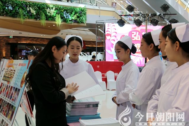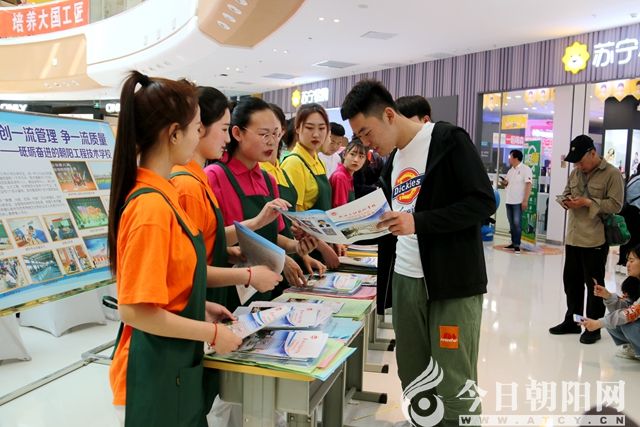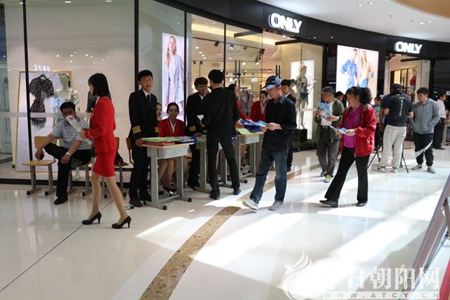 整個(gè)大廳擺滿了各所學(xué)校的宣傳展示板,電子屏幕上循環(huán)播放著朝陽職業(yè)教育宣傳片,學(xué)生們穿著統(tǒng)一的校服向行人發(fā)放《致全市初中家長的一封信》和《職業(yè)教育宣傳手冊》,現(xiàn)場還安排了文藝節(jié)目展演,吸引了眾多行人駐足觀看,還不時(shí)地低聲交流。