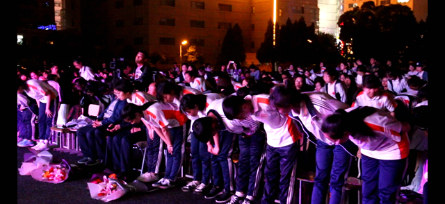 燈光秀與勵(lì)志歌舞表演,突顯了該校師生極強(qiáng)的統(tǒng)籌能力和過人的藝術(shù)才華,以及他們把握時(shí)代脈搏、恪守教育原則、端正育人導(dǎo)向、堅(jiān)定文化自信的專業(yè)素養(yǎng)。一番美輪美奐的表演過后,校領(lǐng)導(dǎo)與高三教師夾道歡送高三學(xué)子離校。伴隨一曲《再見》,學(xué)生與老師擊掌、擁抱、流著熱淚互道珍重,現(xiàn)場(chǎng)氣氛既感人肺腑、情意綿綿,又催人奮進(jìn)、勇往直前。