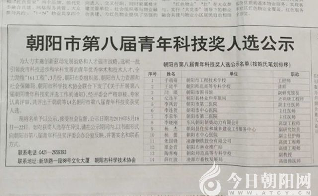 開展這一獎項評選是為貫徹落實人才強市戰(zhàn)略,培養(yǎng)發(fā)現(xiàn)一批青年科技帶頭人,激發(fā)廣大青年科技工作者的創(chuàng)造活力和創(chuàng)業(yè)熱情,鼓勵其在全市經(jīng)濟社會事業(yè)發(fā)展中作出貢獻,為全面建成小康社會提供有力人才支撐。經(jīng)評委會嚴格審核、專家認真評審,共評出于萌萌等14名朝陽市第八屆青年科技獎獲獎人選。