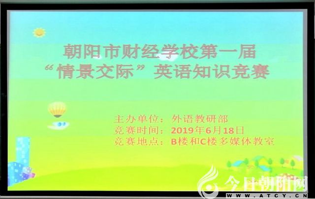 6月18日下午,遼寧省朝陽(yáng)市財(cái)經(jīng)學(xué)校外語(yǔ)教研部在B樓和C樓的兩個(gè)多媒體教室里舉行了第一屆學(xué)生“情景交際”英語(yǔ)知識(shí)競(jìng)賽,該校18級(jí)所有班級(jí)和17級(jí)升學(xué)班的141名學(xué)生參加了比賽。