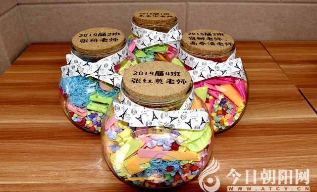 畢業(yè)生代表用詩朗誦的形式向老師表達謝意和不舍。班主任老師登上臺來,學生們把裝載大家夢想的心愿瓶交到老師手中。老師們會將每個班的夢想瓶放進校史館,留下孩子們努力的證明和追夢的足跡。