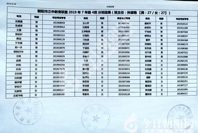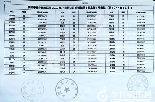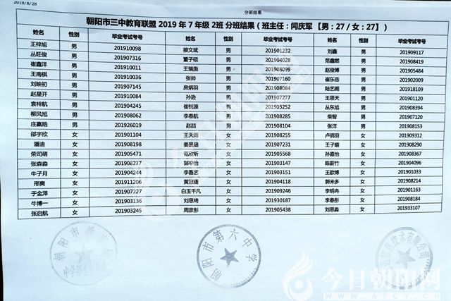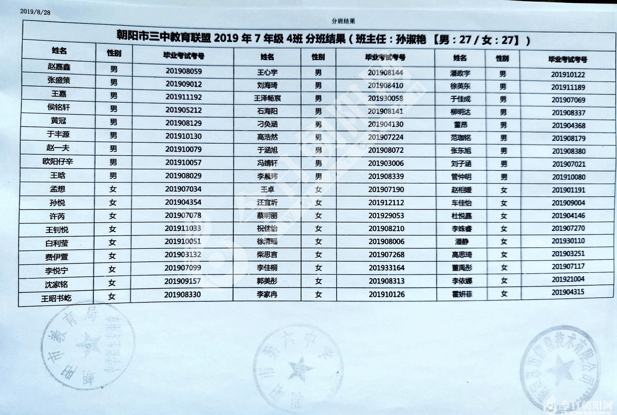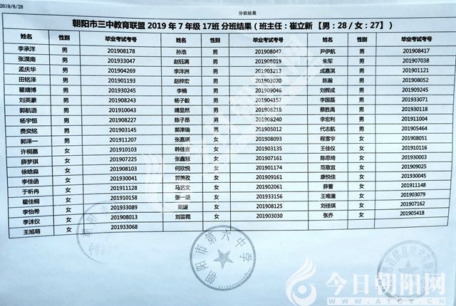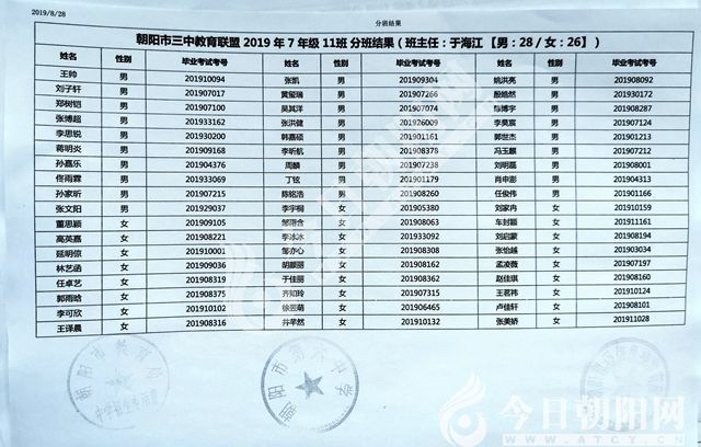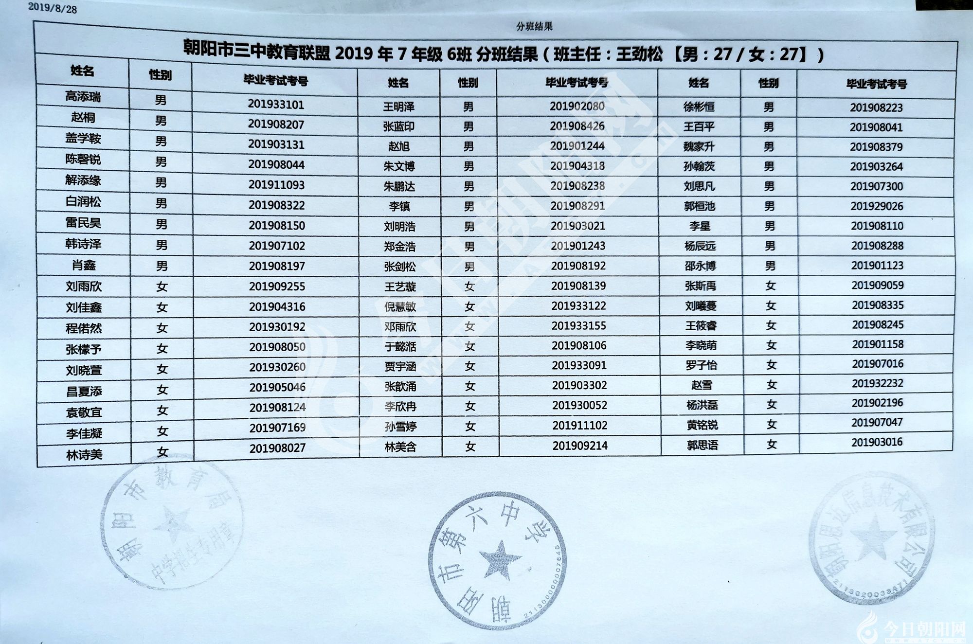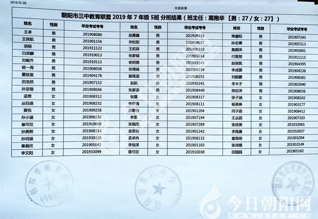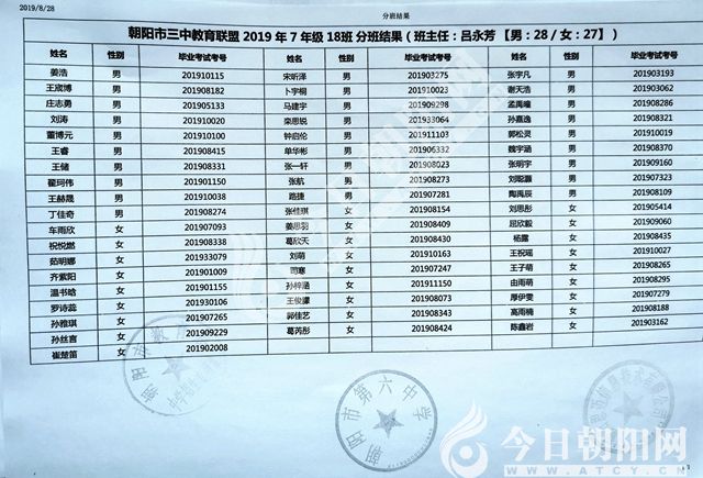 家長速看!朝陽市三中教育聯(lián)盟2019年新生分班表