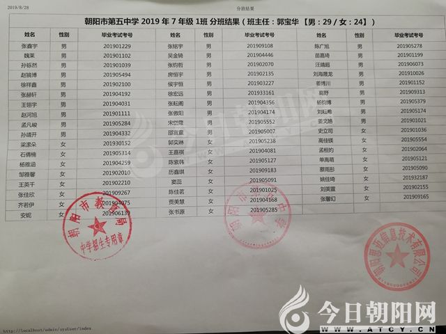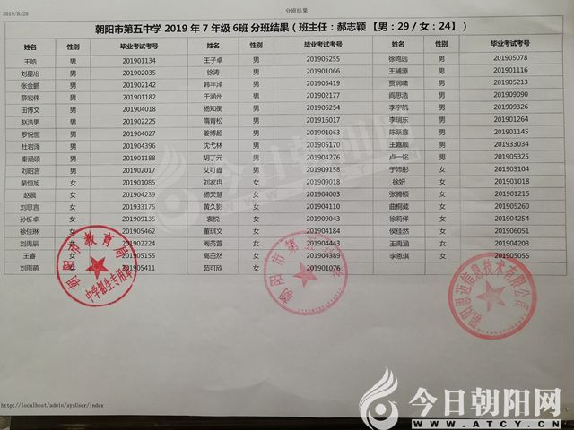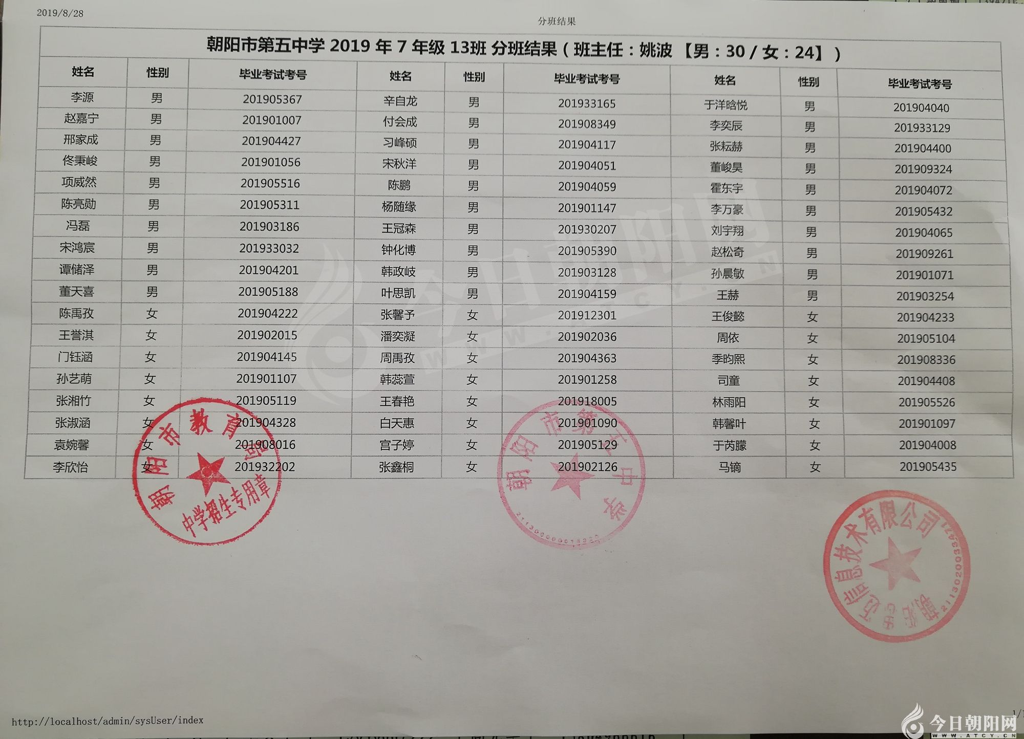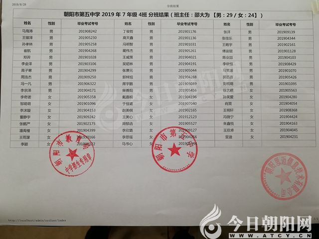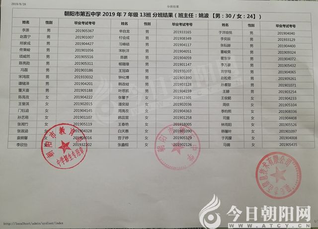 家長速看!朝陽市一中教育聯(lián)盟2019年新生分班表