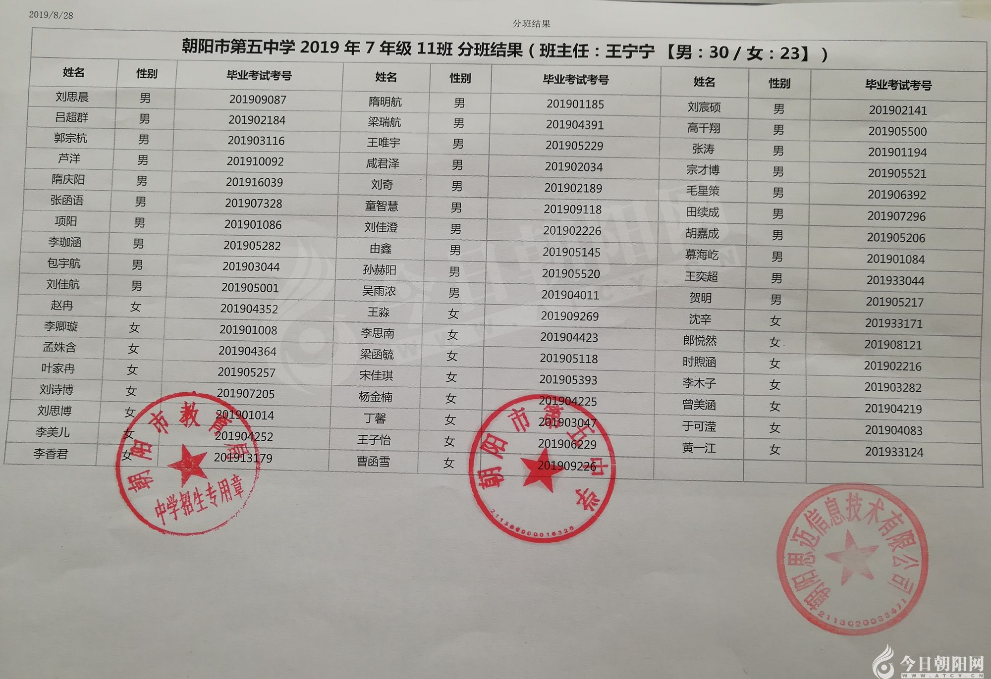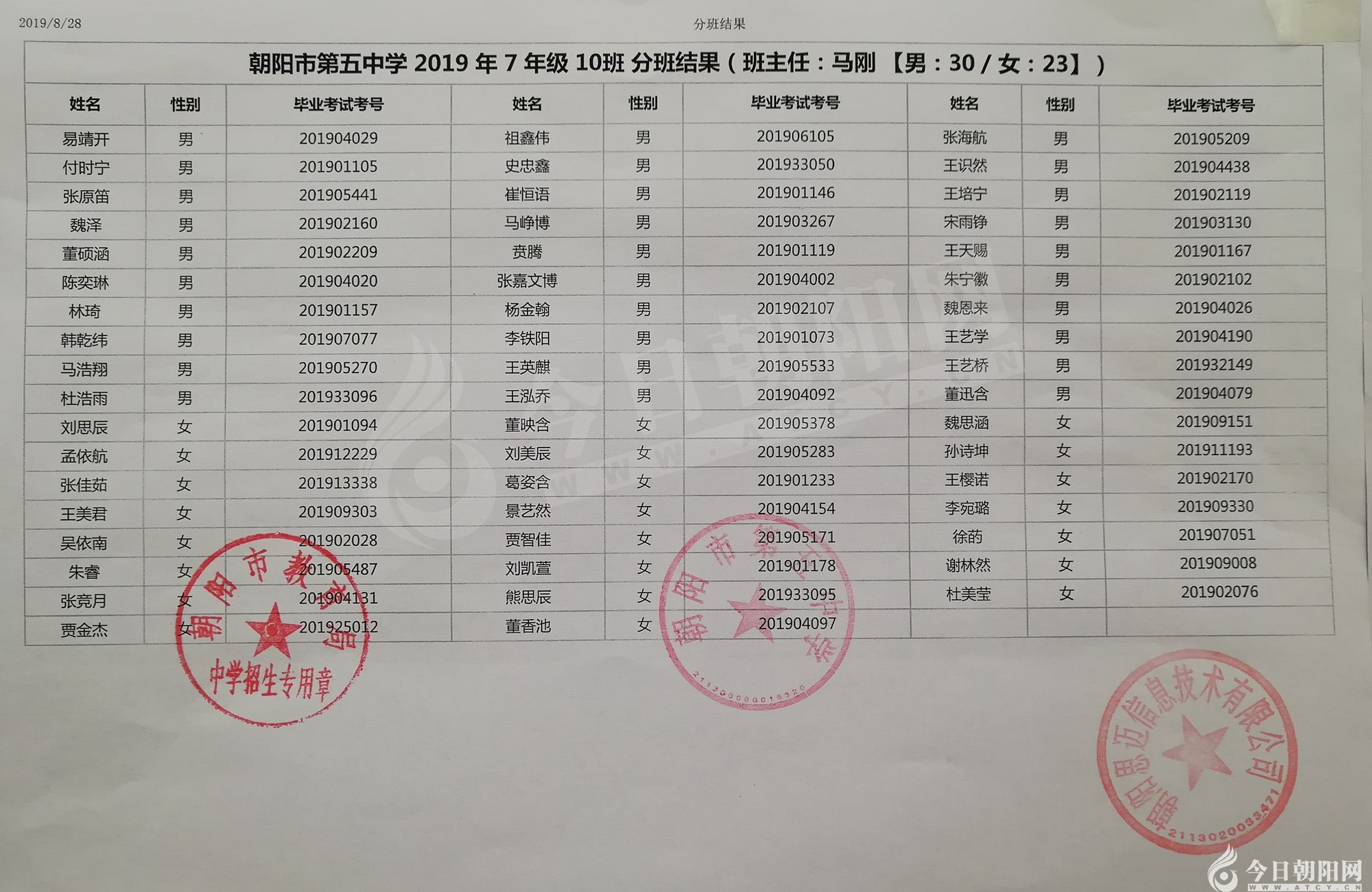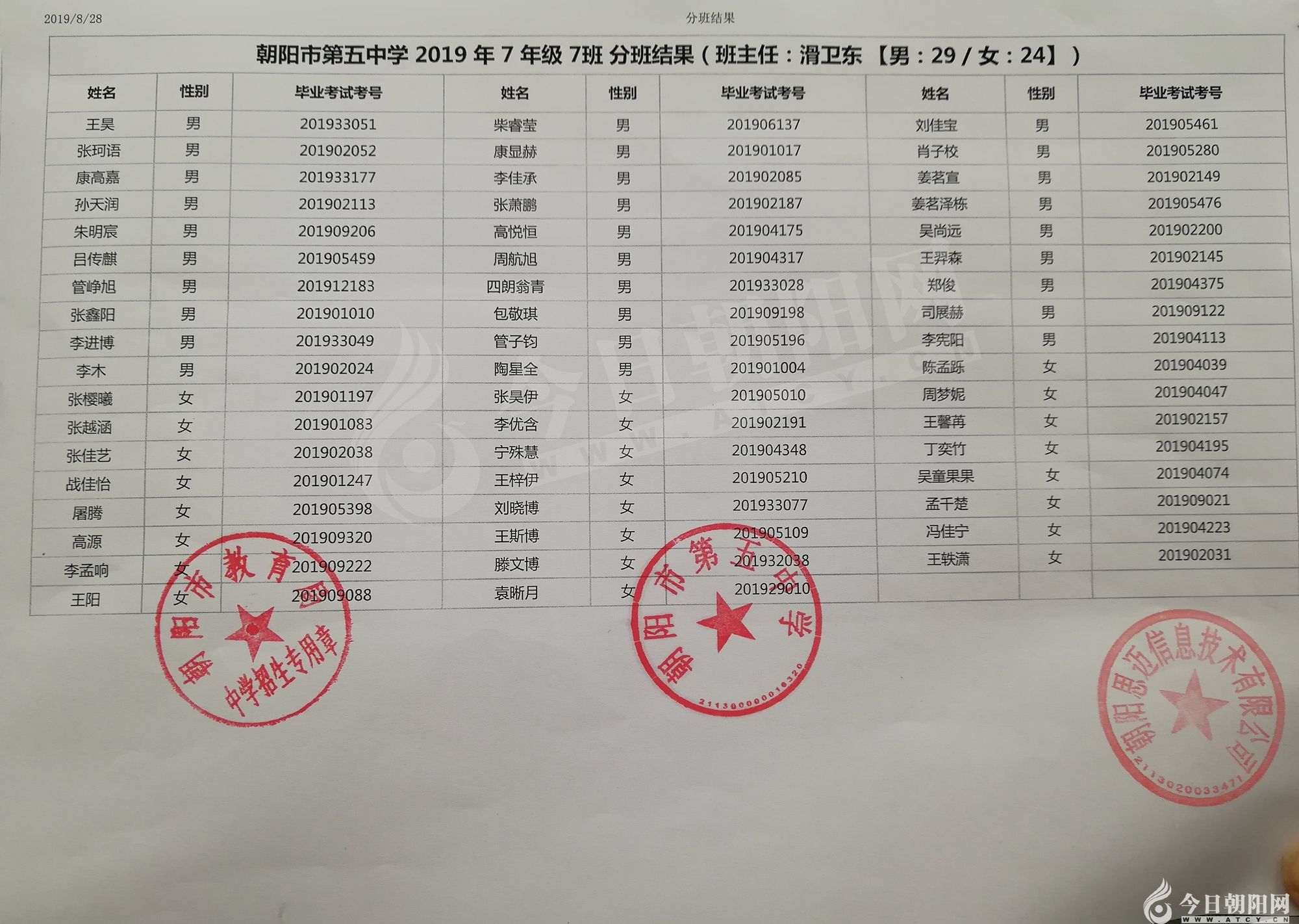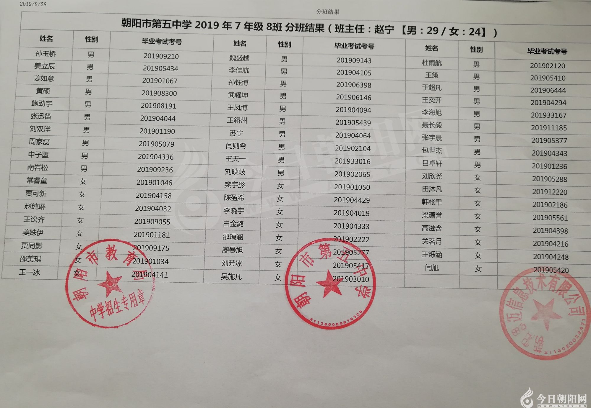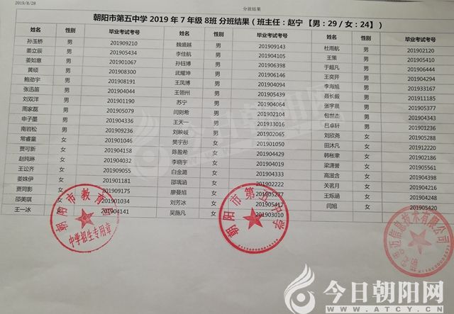 家長速看!朝陽市第五中學(xué)2019年新生分班表