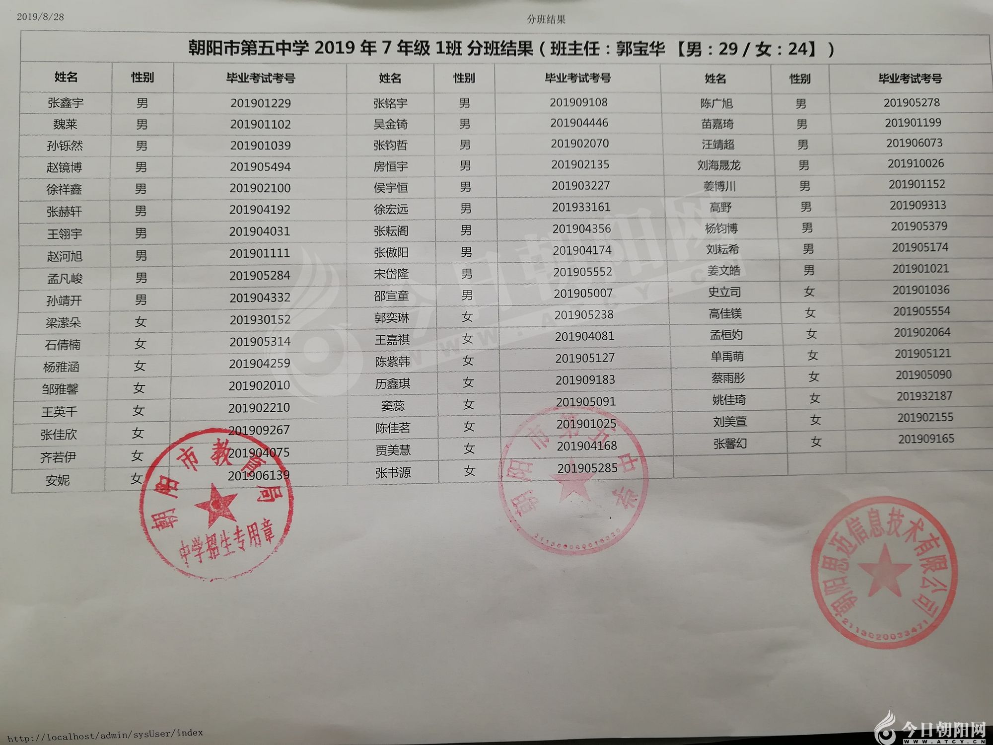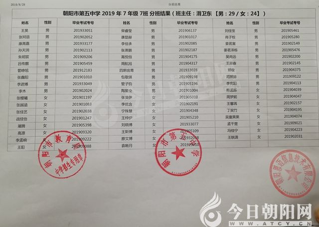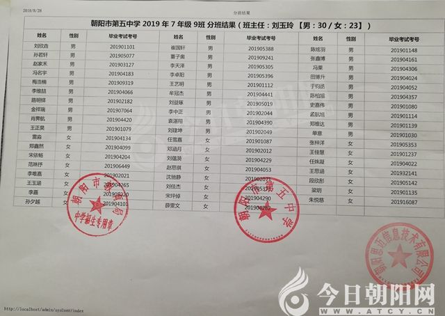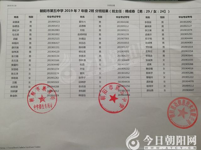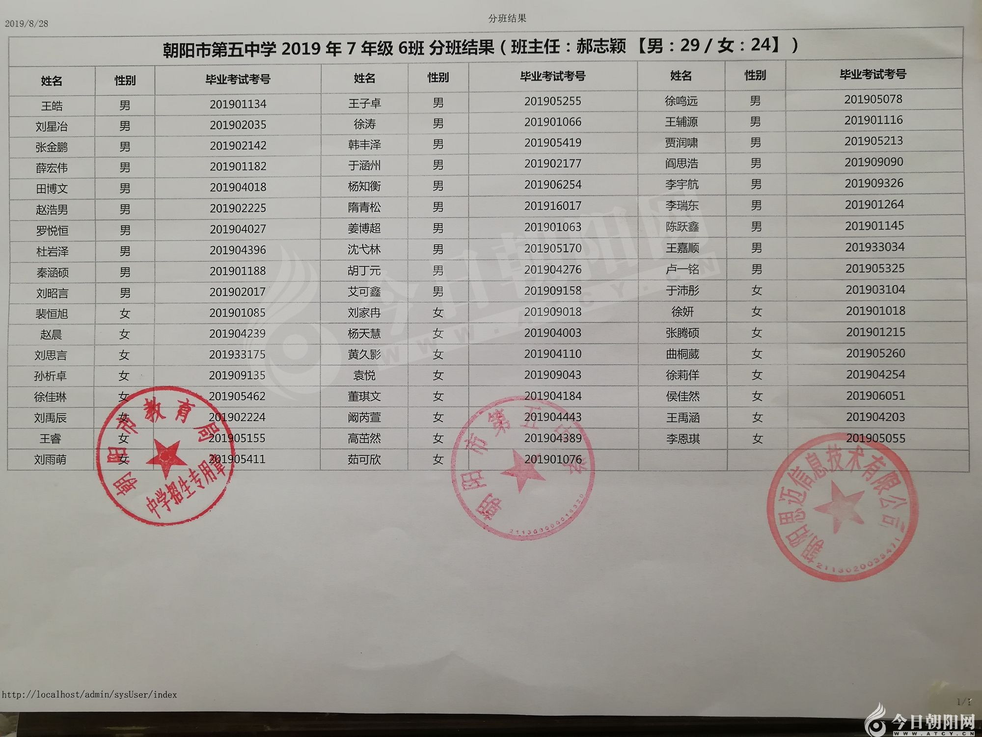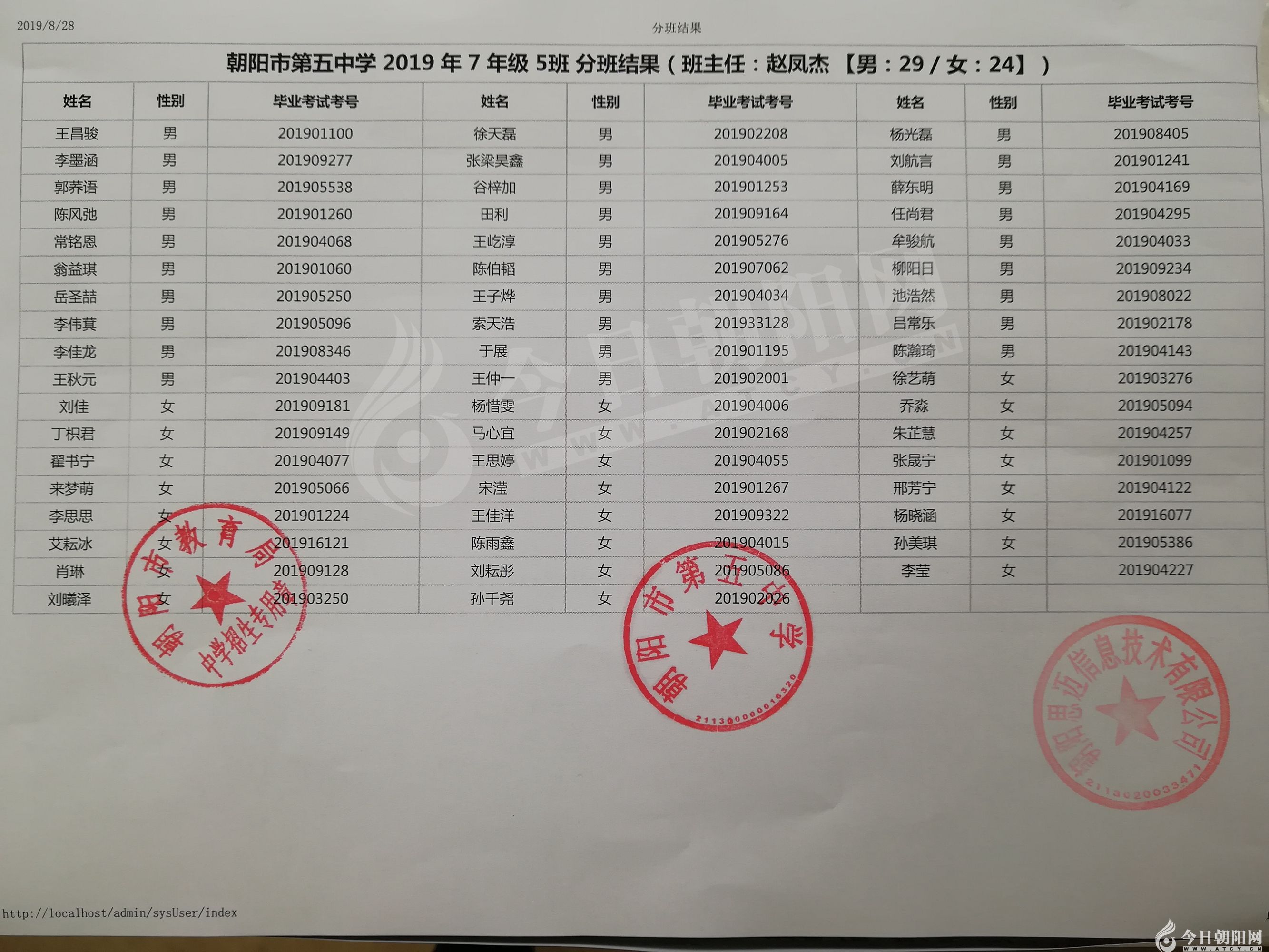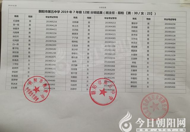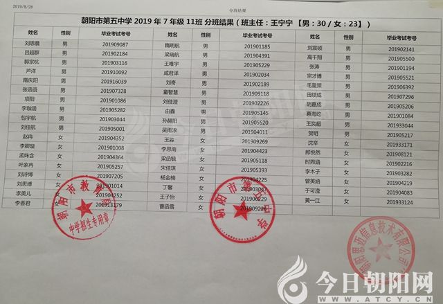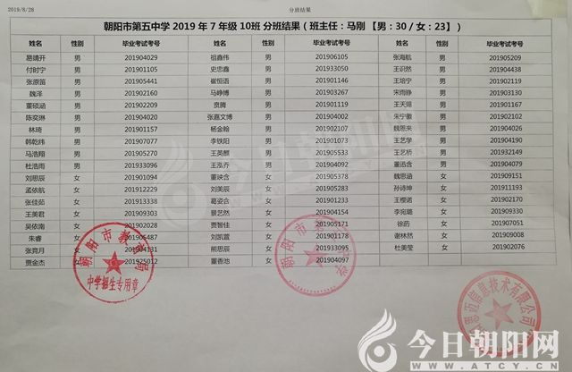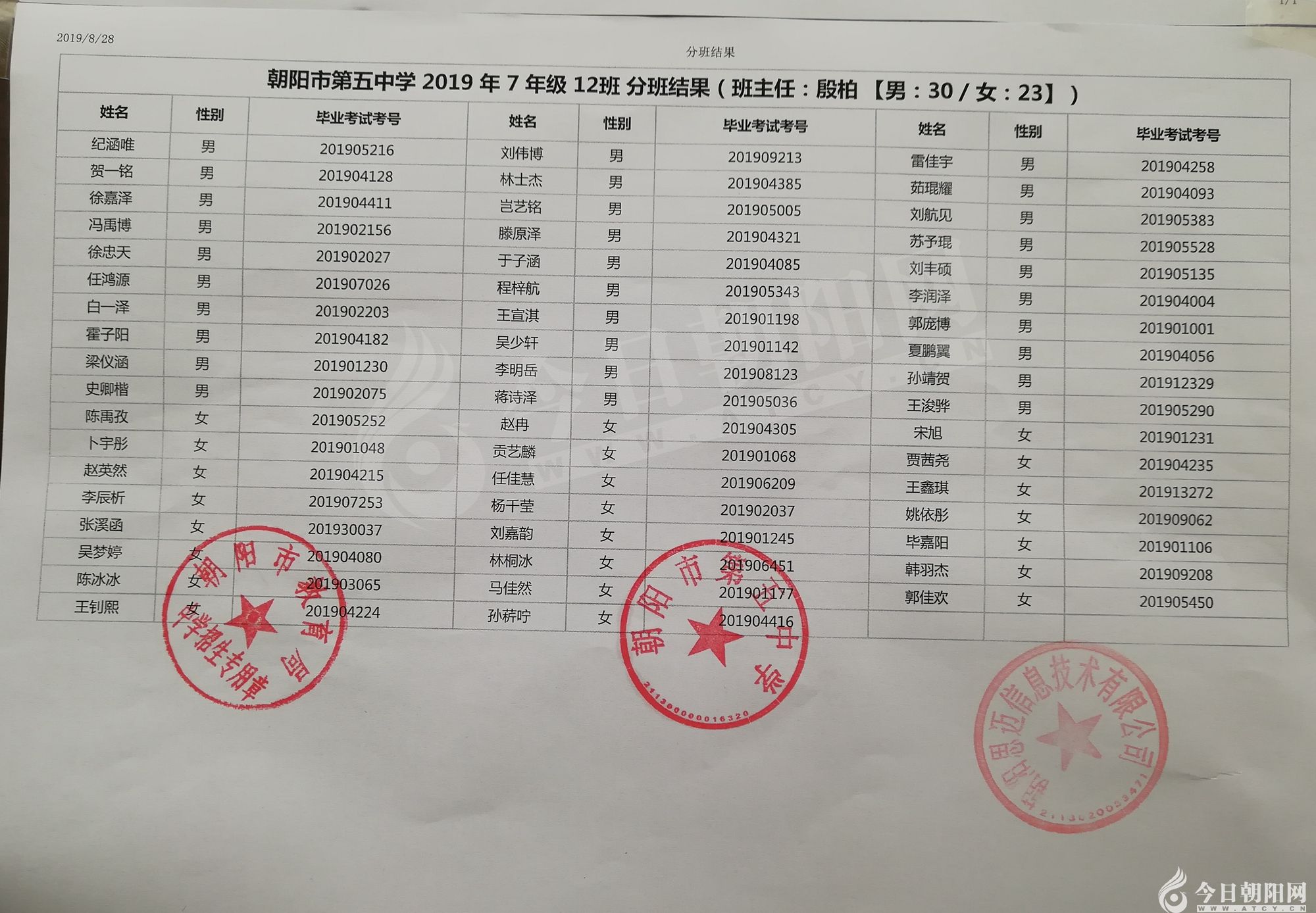 家長速看!朝陽市第五中學(xué)2019年新生分班表