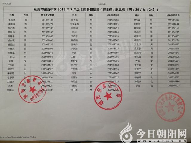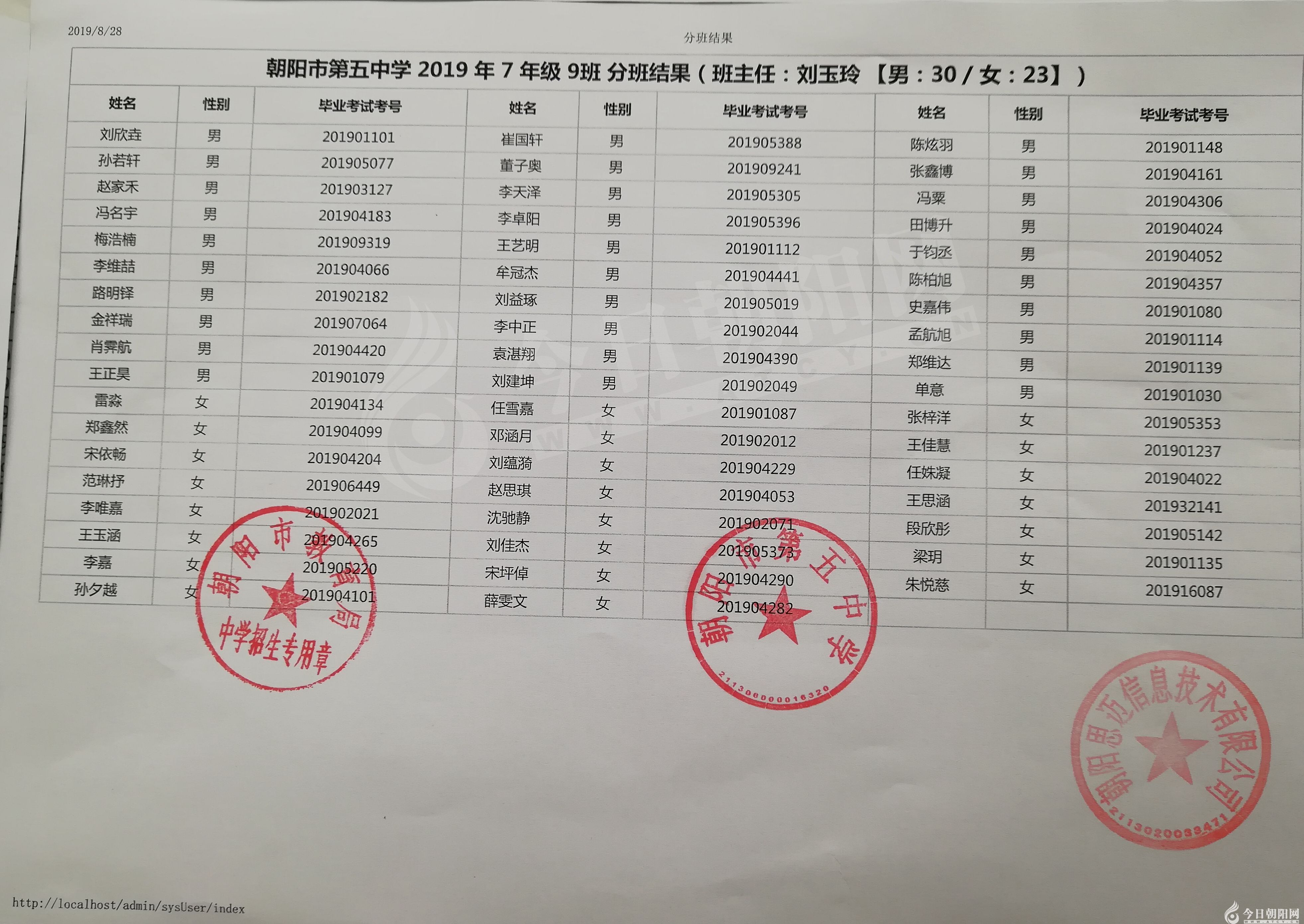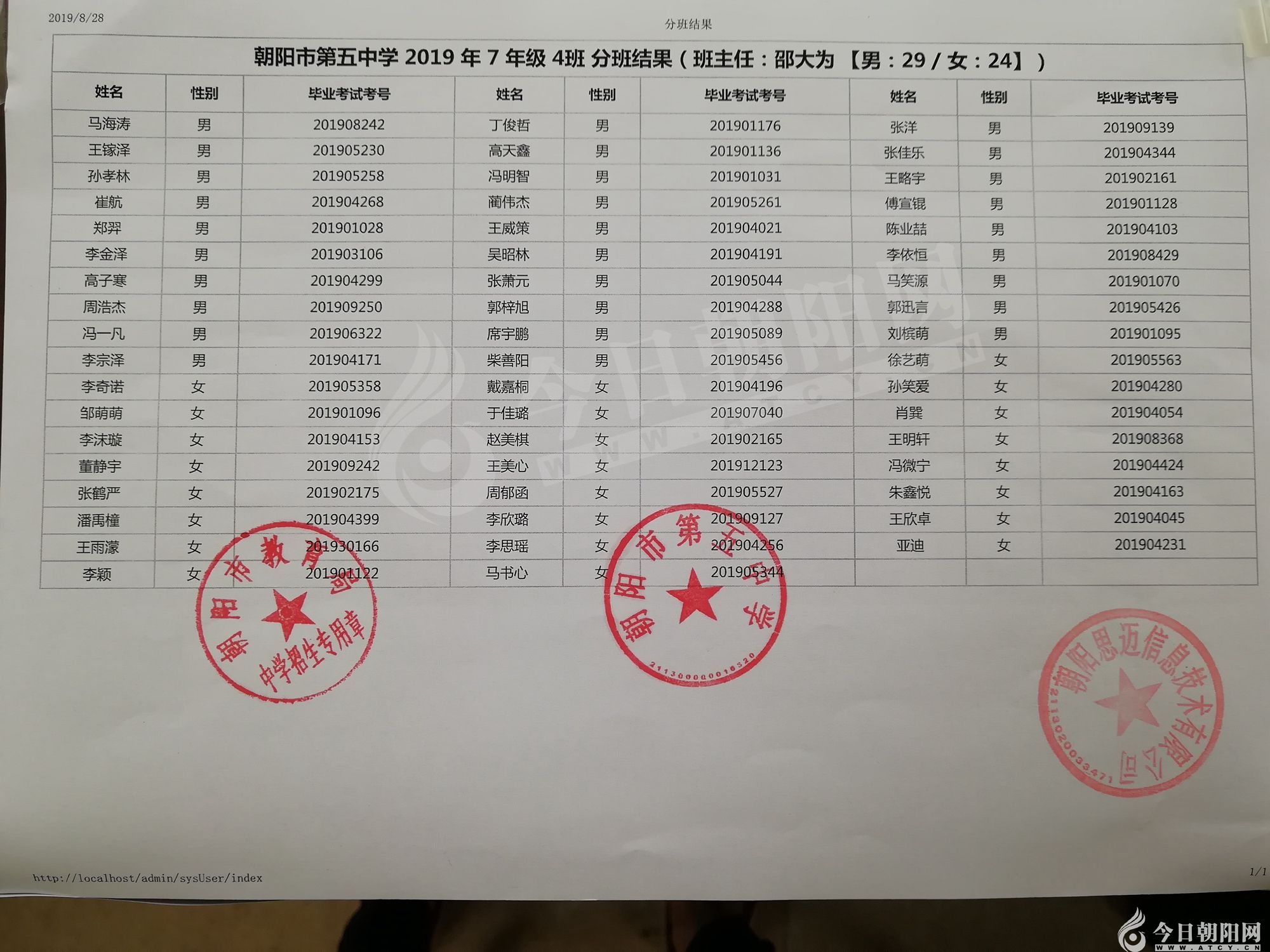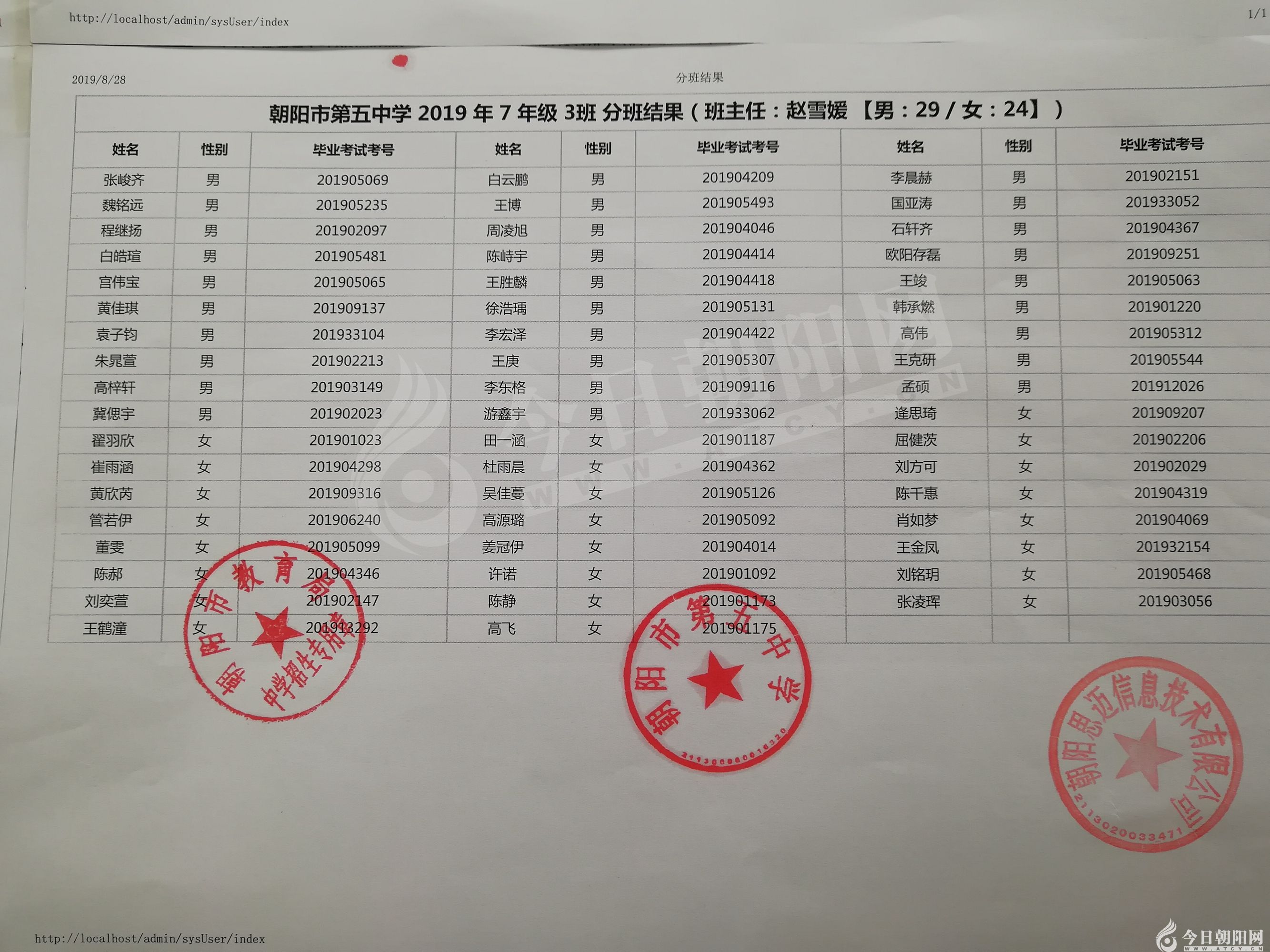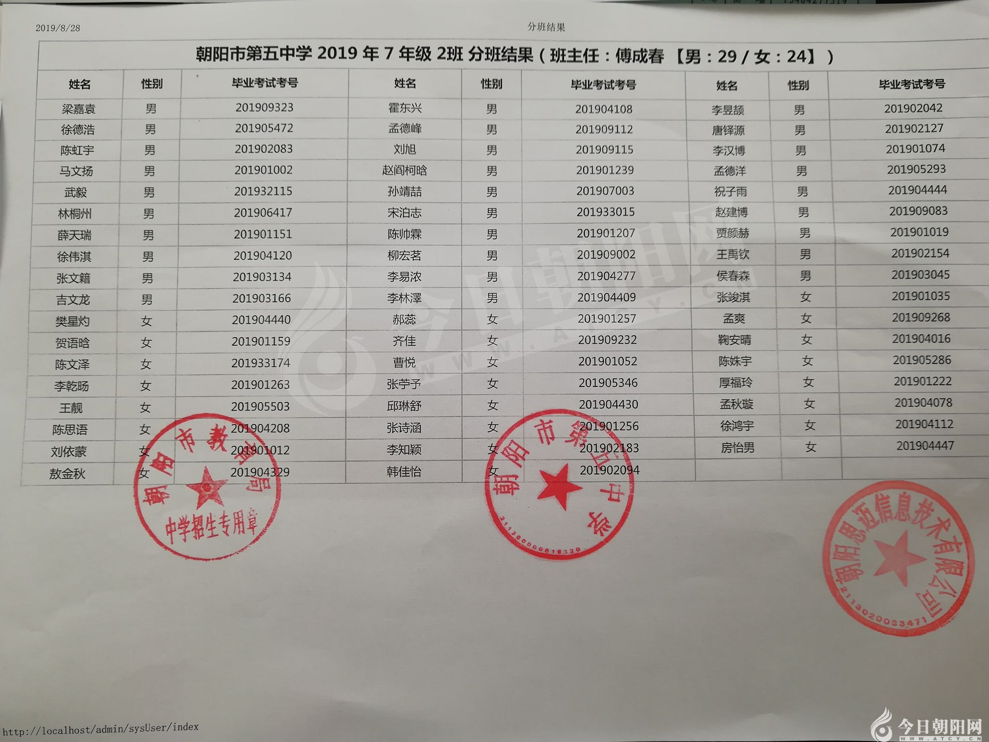 家長速看!朝陽市第五中學(xué)2019年新生分班表