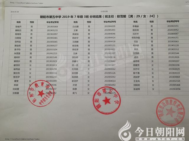 家長速看!朝陽市三中教育聯(lián)盟2019年新生分班表