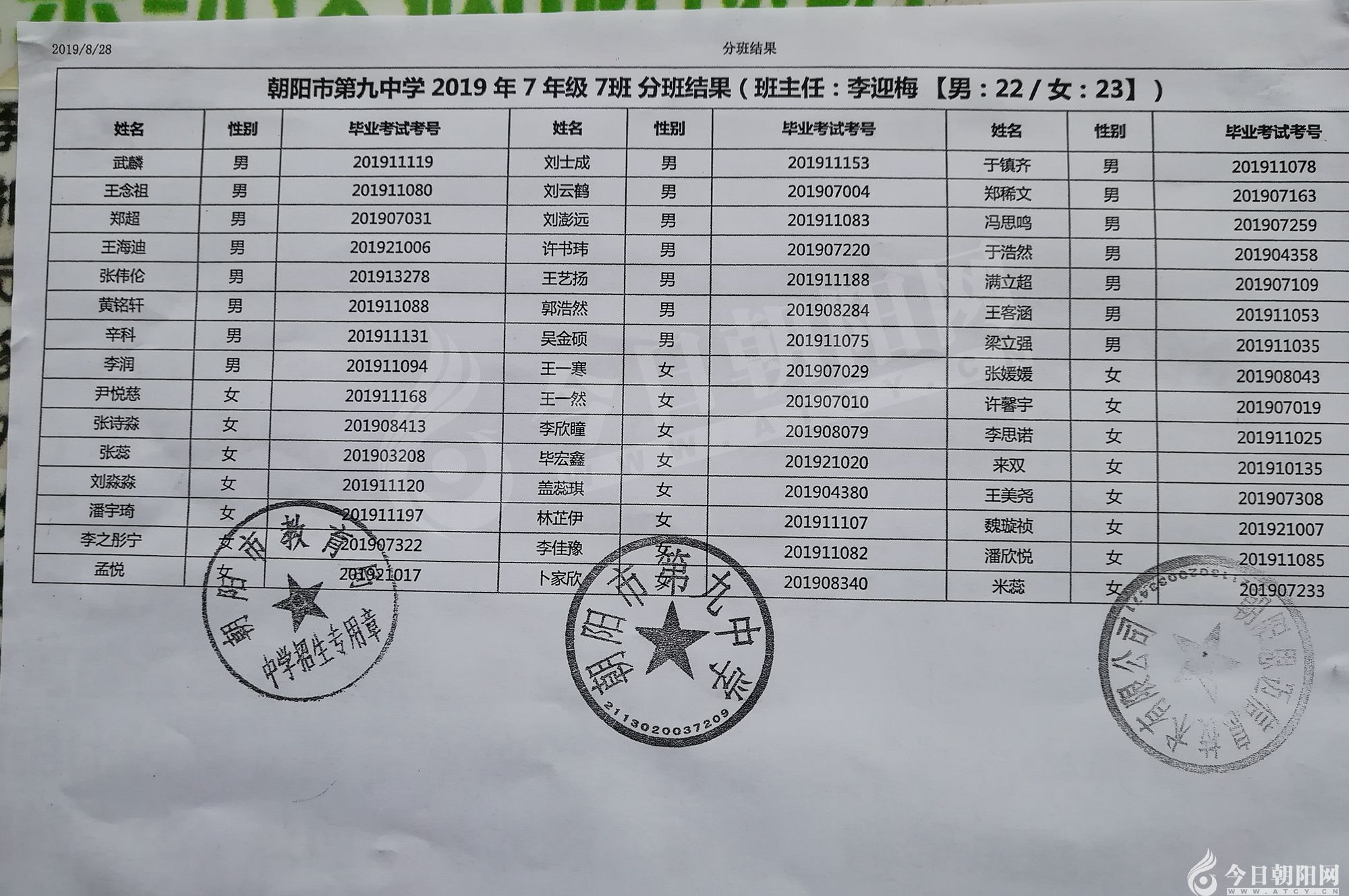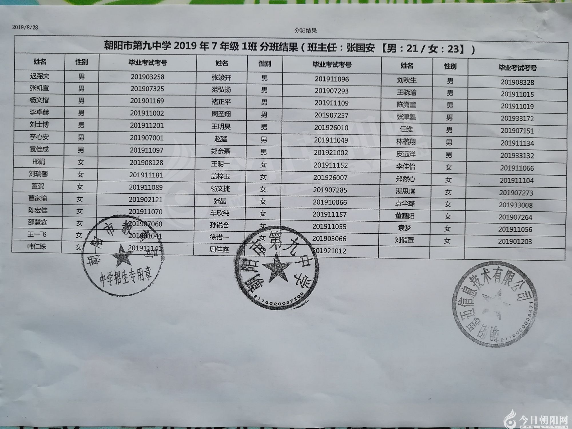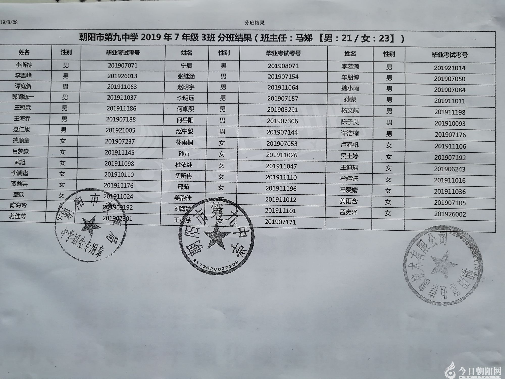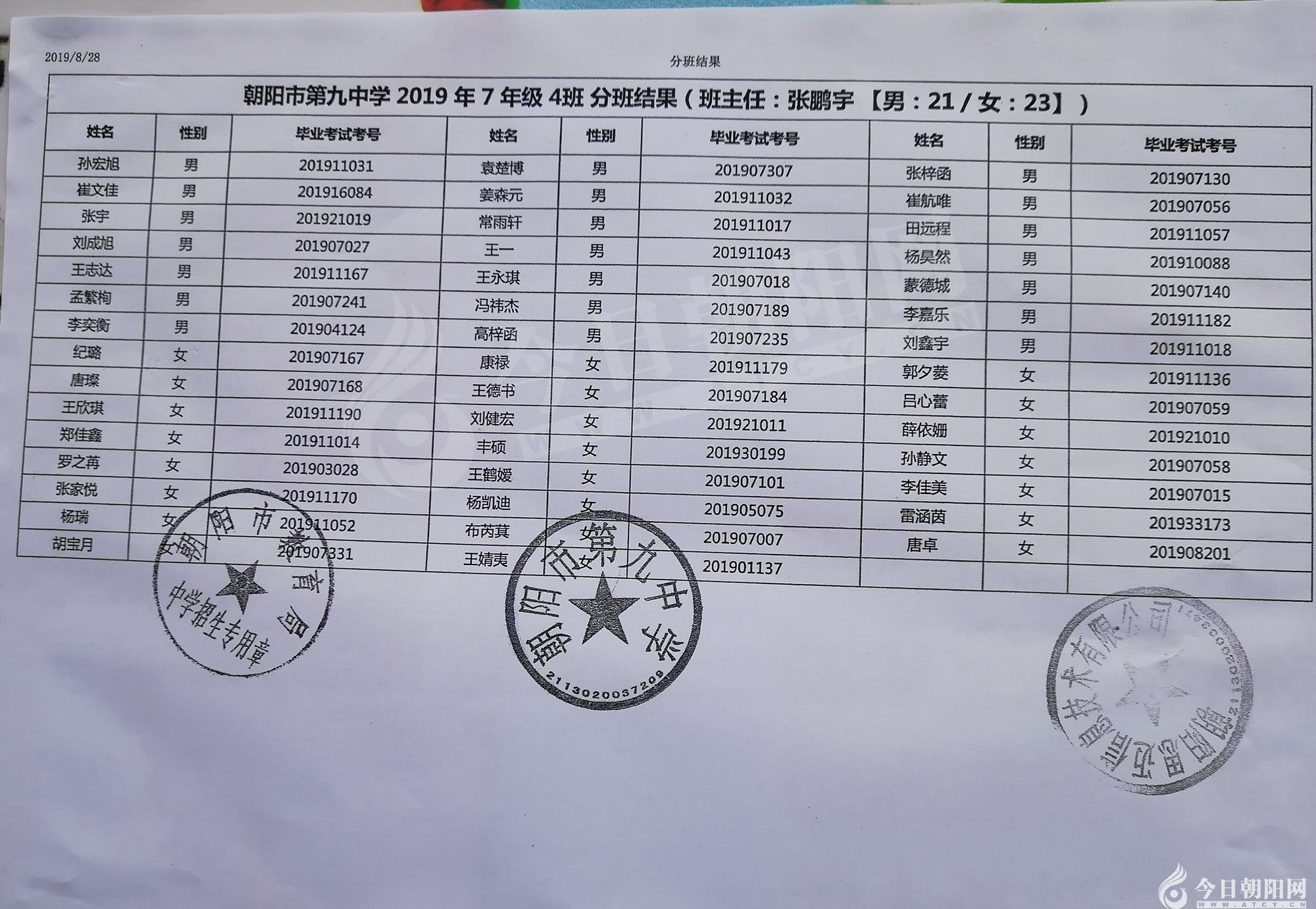 家長(zhǎng)速看!朝陽(yáng)市第九中學(xué)2019年新生分班表