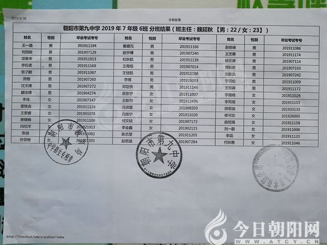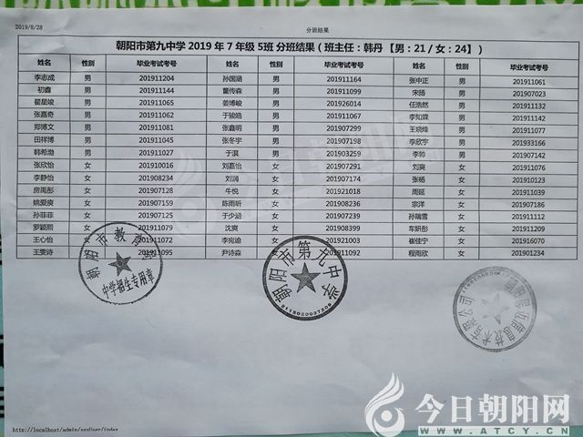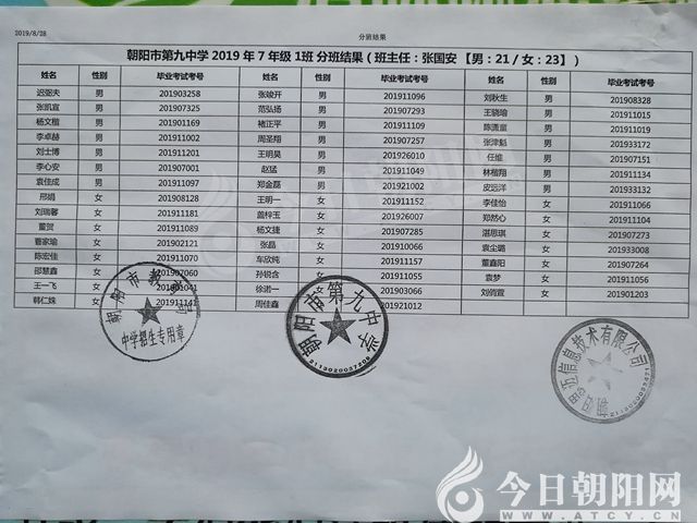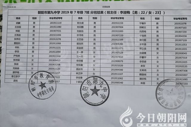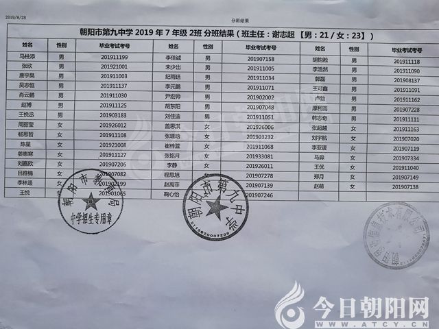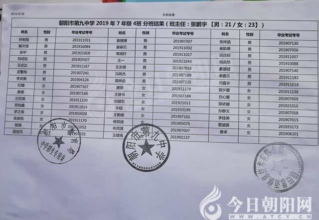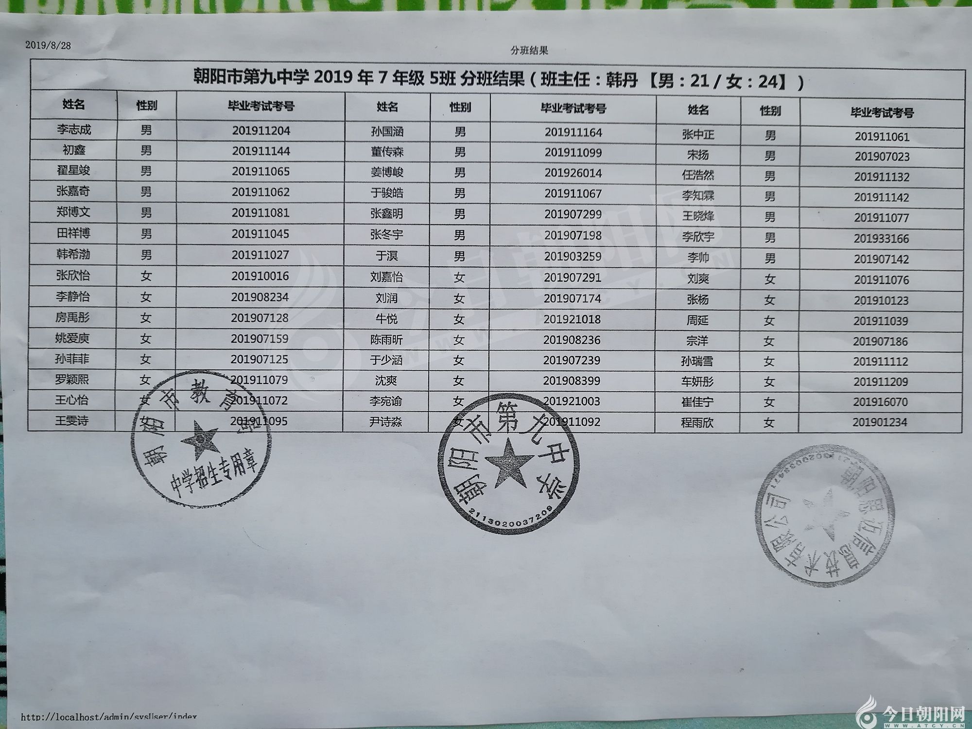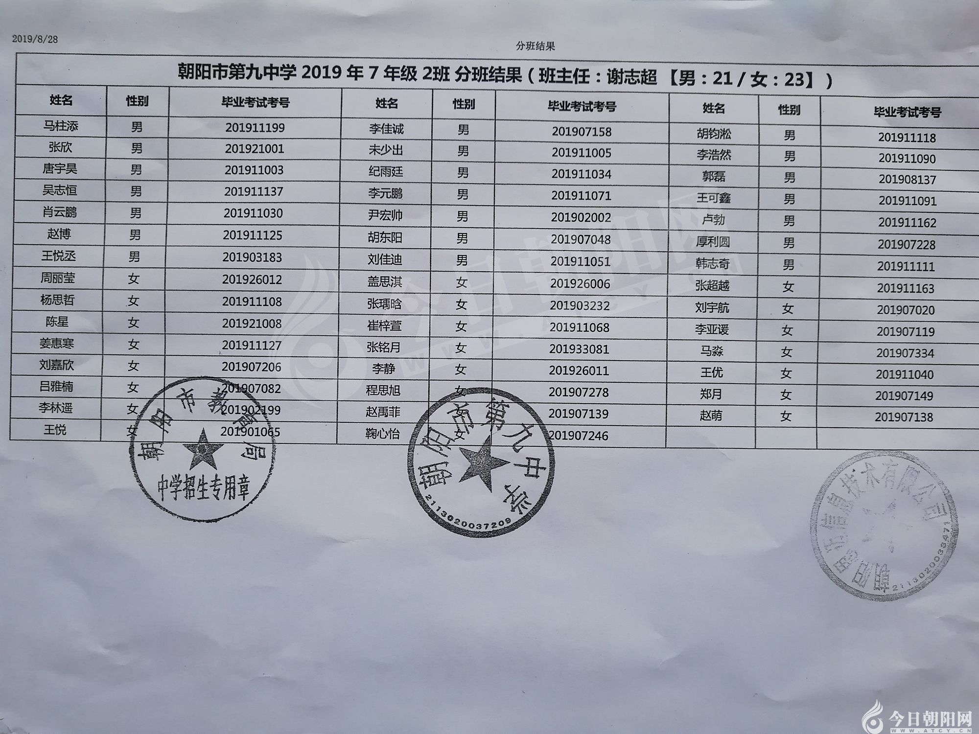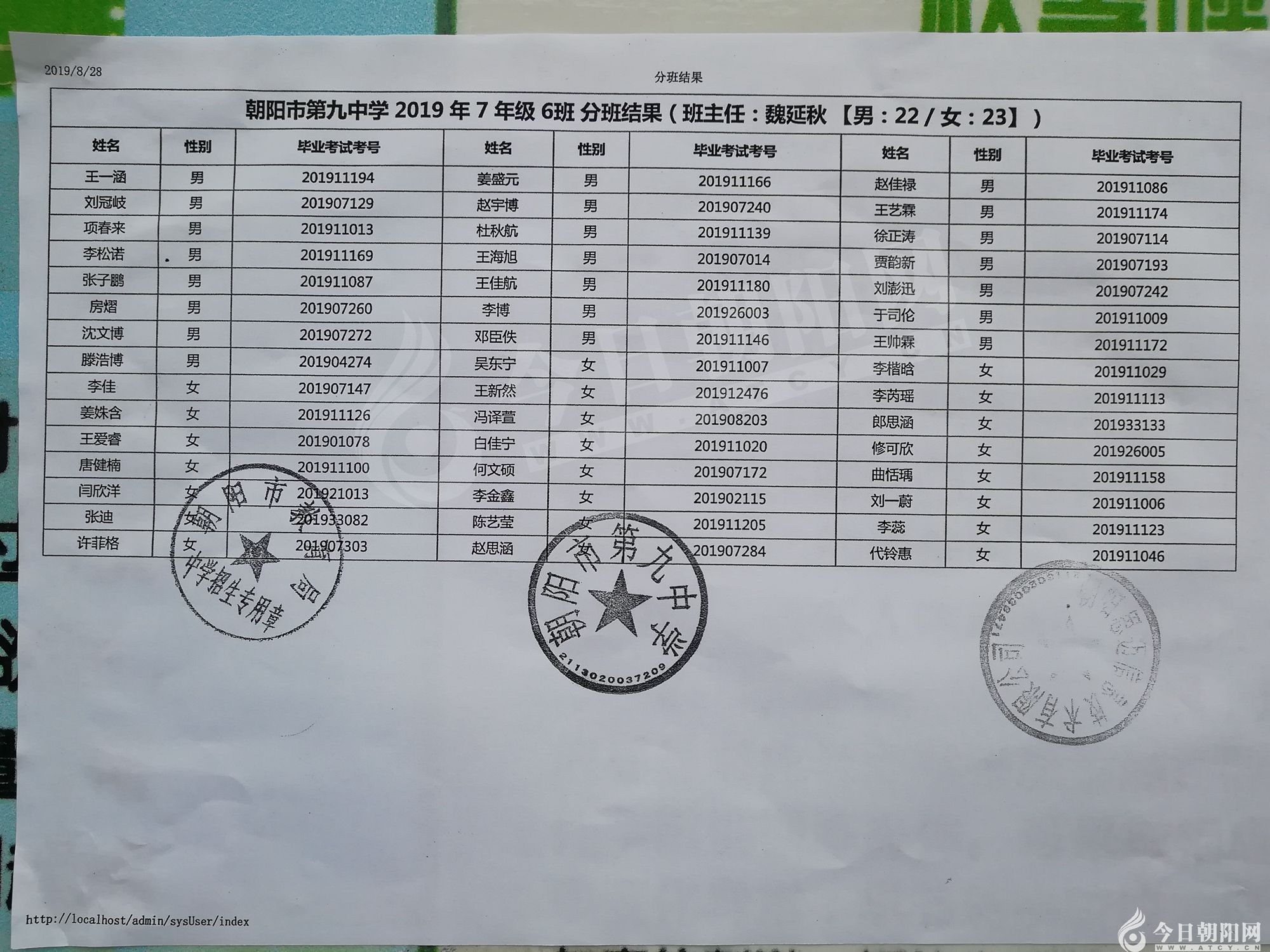 家長(zhǎng)速看!朝陽(yáng)市第九中學(xué)2019年新生分班表