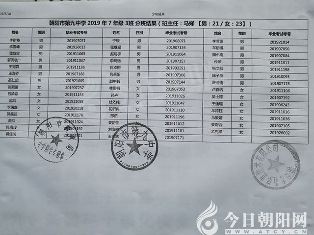 家長(zhǎng)速看!朝陽(yáng)市三中教育聯(lián)盟2019年新生分班表