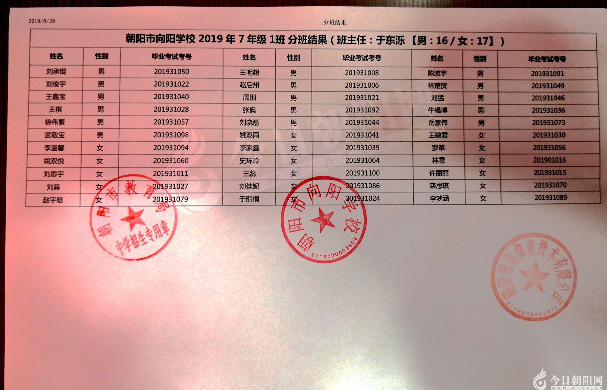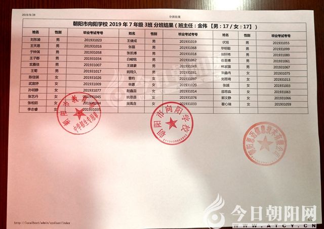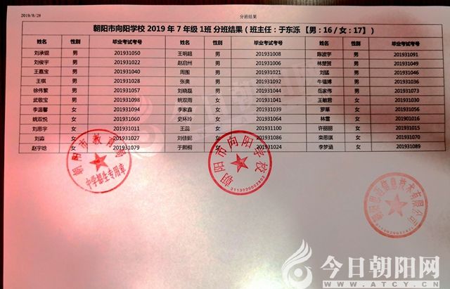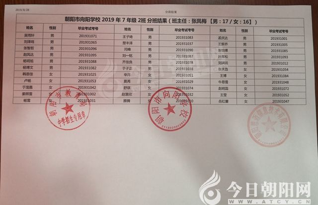 家長速看!朝陽市一中教育聯(lián)盟2019年新生分班表