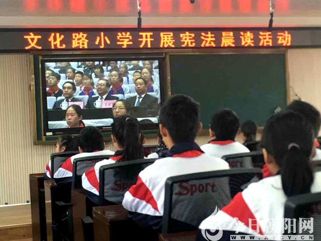 在教育系統(tǒng)國家憲法日“憲法晨讀”活動中,各學校都通過普法網觀看直播,組織學生代表與全國主會場、各省分會場的全國中小學生同步開展了“憲法晨讀”活動。