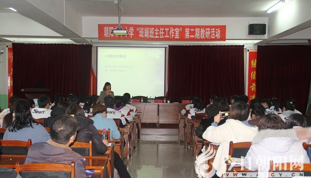 12月13日,由遼寧省朝陽(yáng)市教師進(jìn)修學(xué)院主辦,朝陽(yáng)市第二高級(jí)中學(xué)承辦的朝陽(yáng)市中小學(xué)“斑斕班主任工作室”第二期教研活動(dòng)在市二高中舉行。市教師進(jìn)修學(xué)院、各縣(市)區(qū)教師進(jìn)修學(xué)校、市二高中有關(guān)領(lǐng)導(dǎo),工作室全體成員及市二高中的青年班主任參加了活動(dòng)?;顒?dòng)由市二高中老師王丹主持。